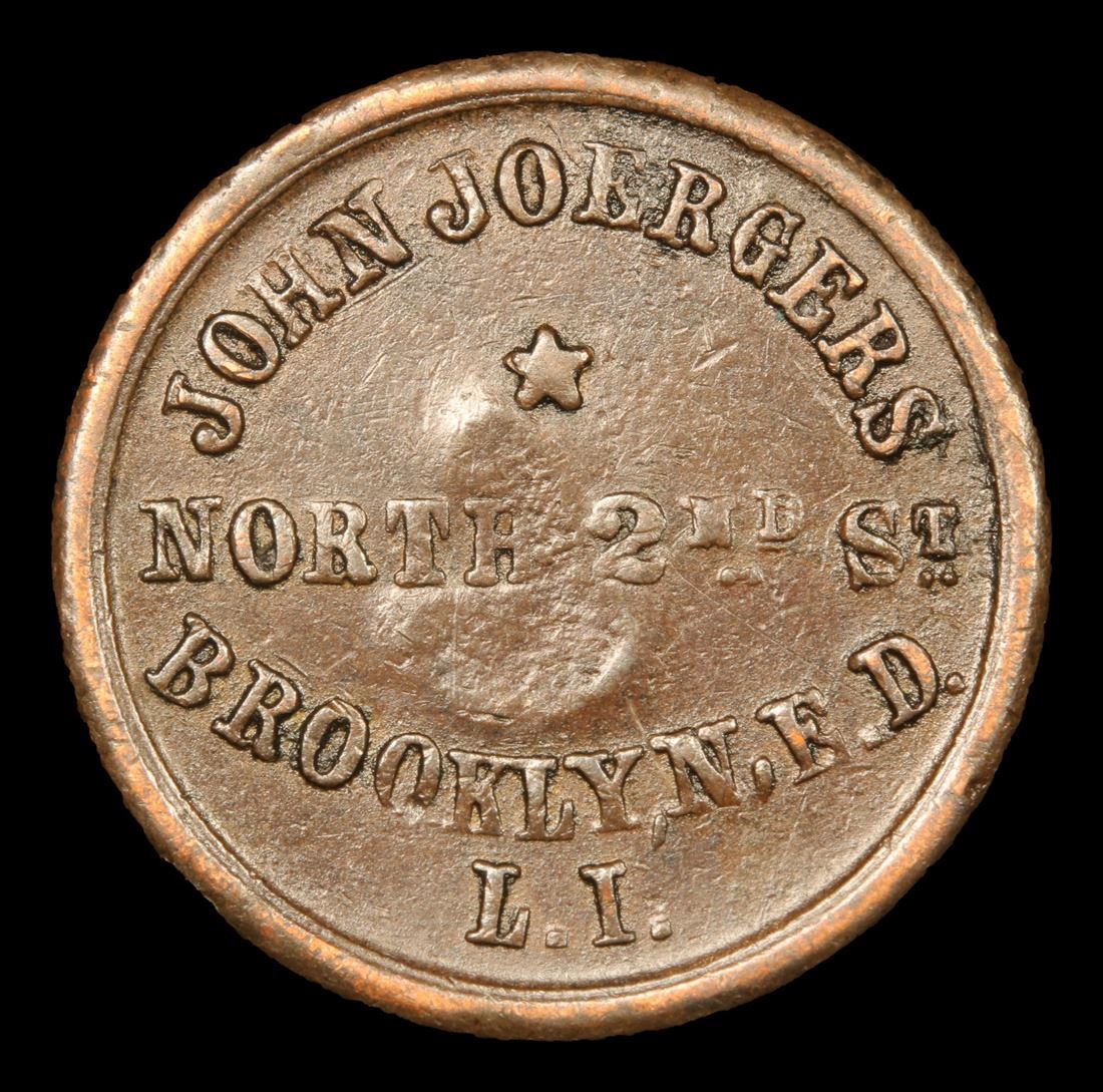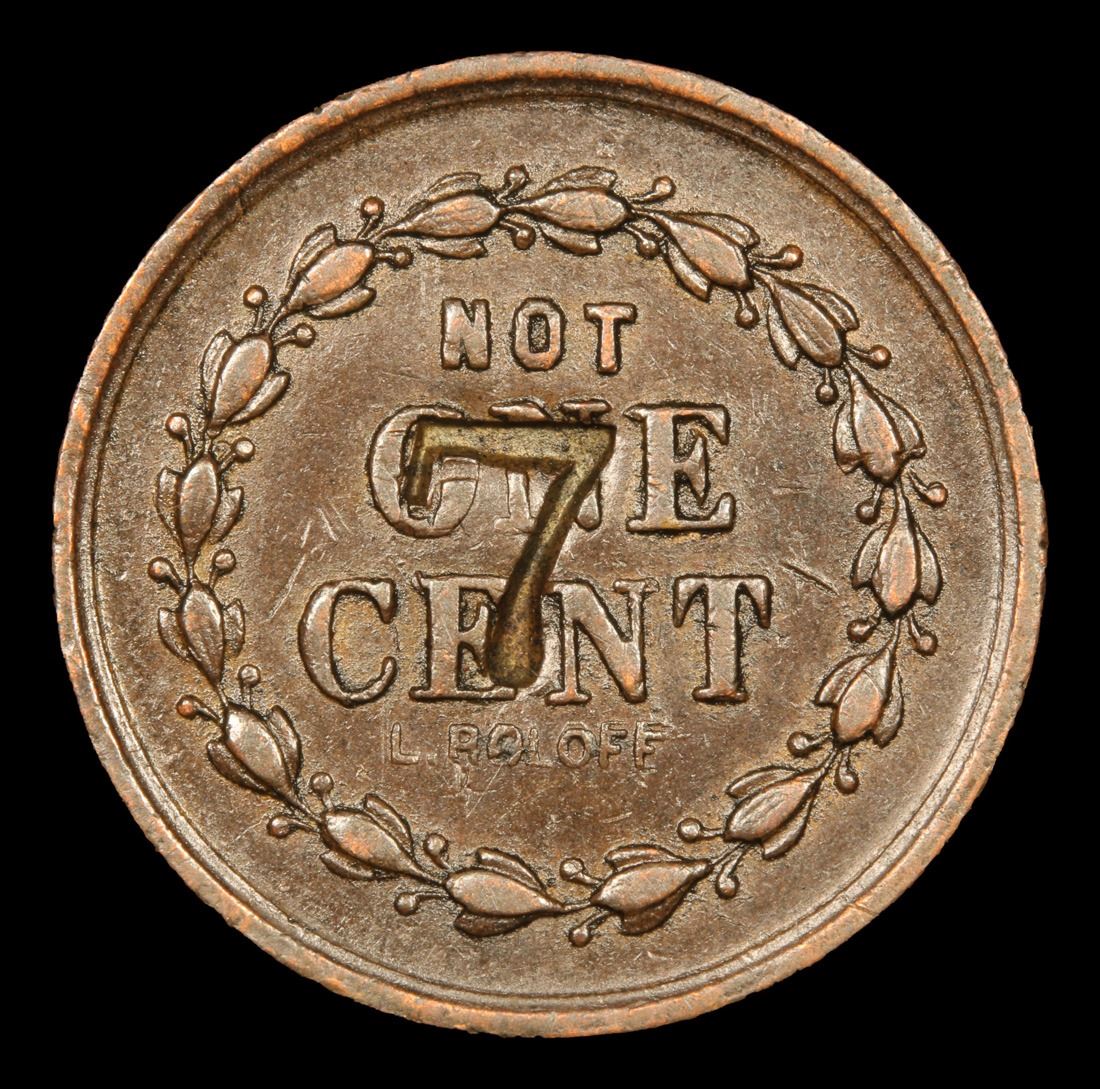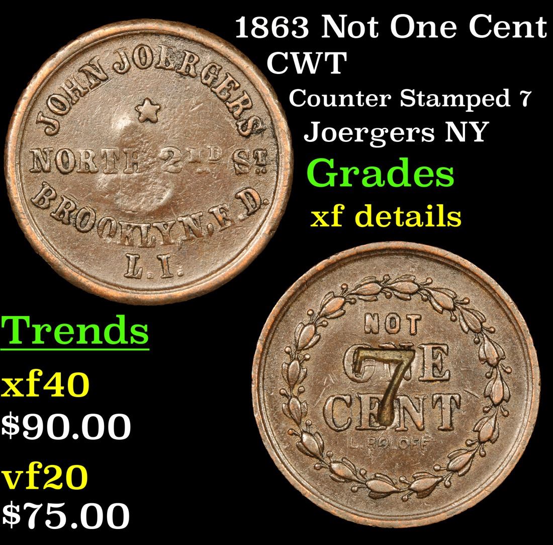 1863 Not One Cent Counter Stamped 7 Joergers NY Civil War Token 1c Grades xf details.