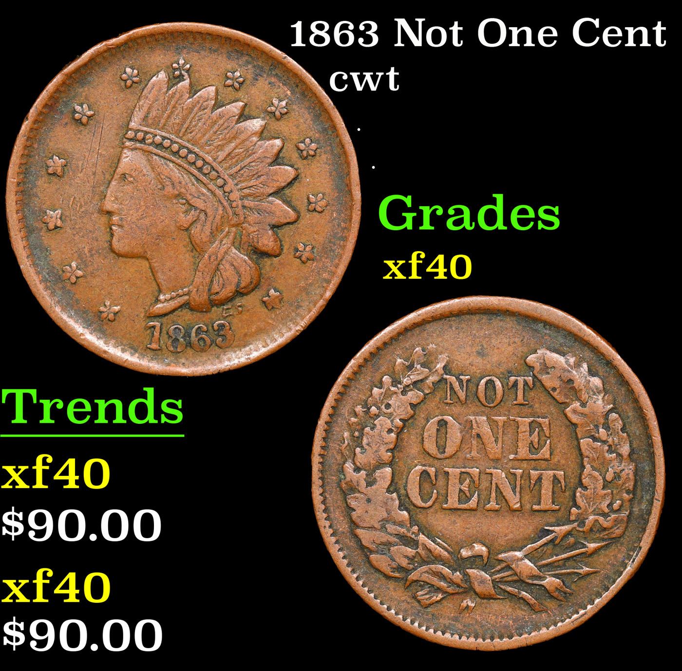 1863 Not One Cent Civil War Token 1c Grades xf.