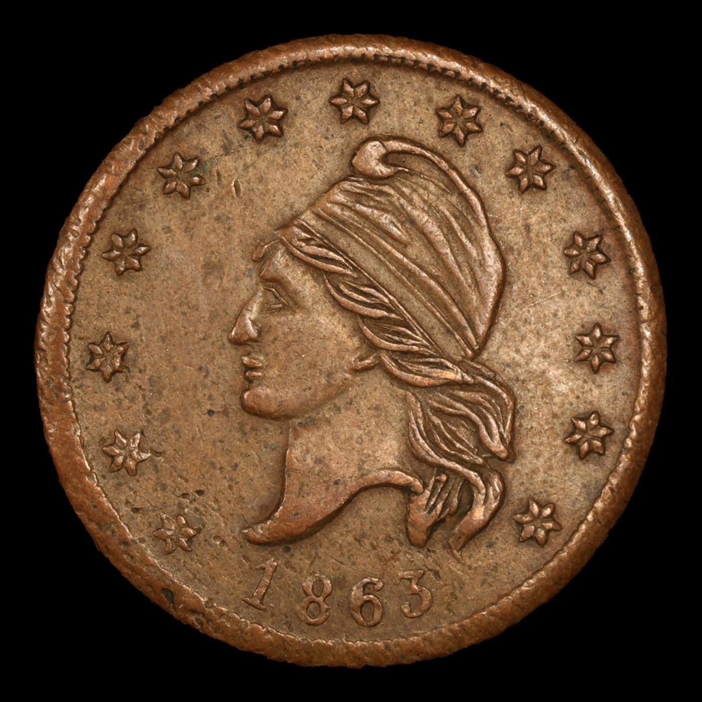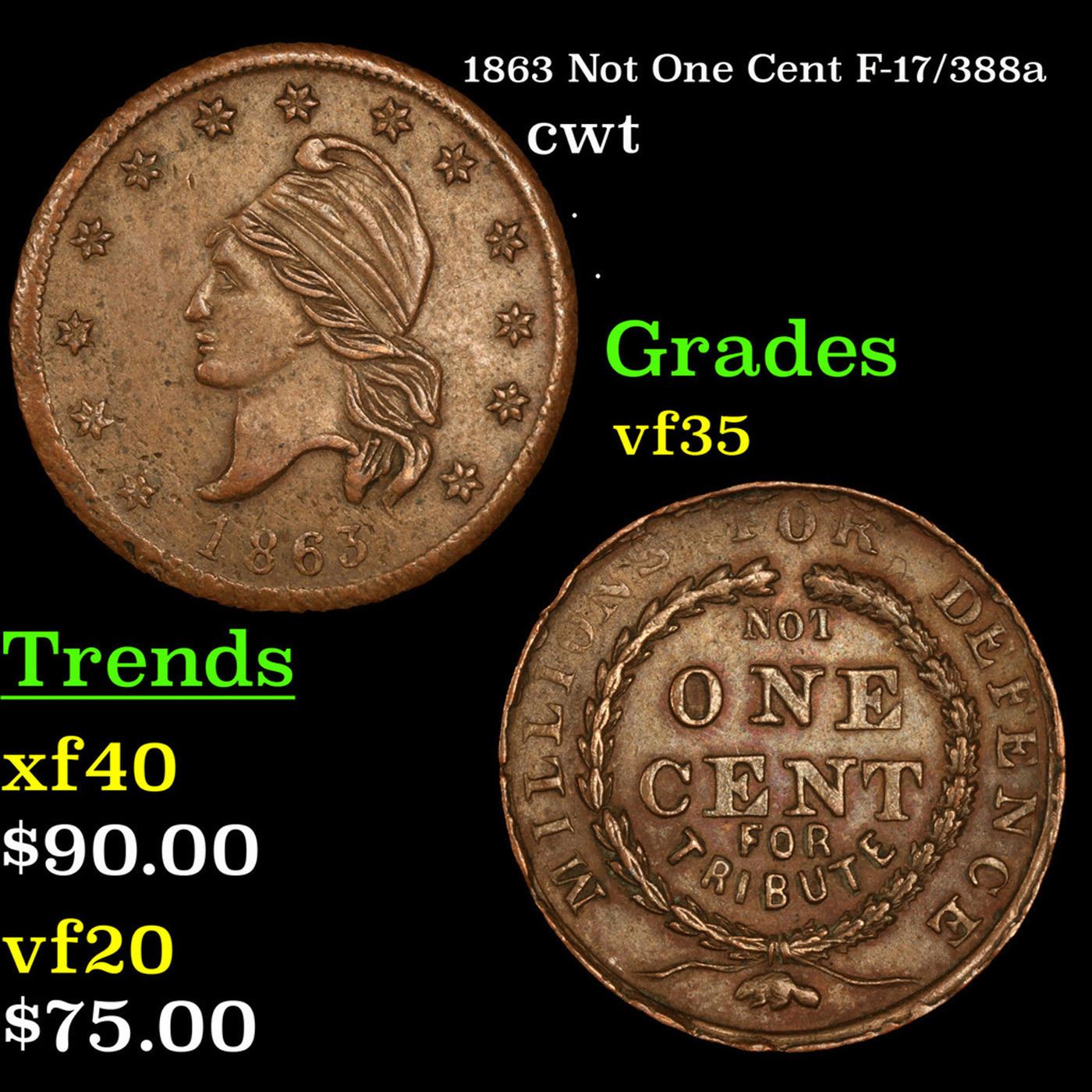 1863 Not One Cent F-17/388a Civil War Token 1c Grades vf++.