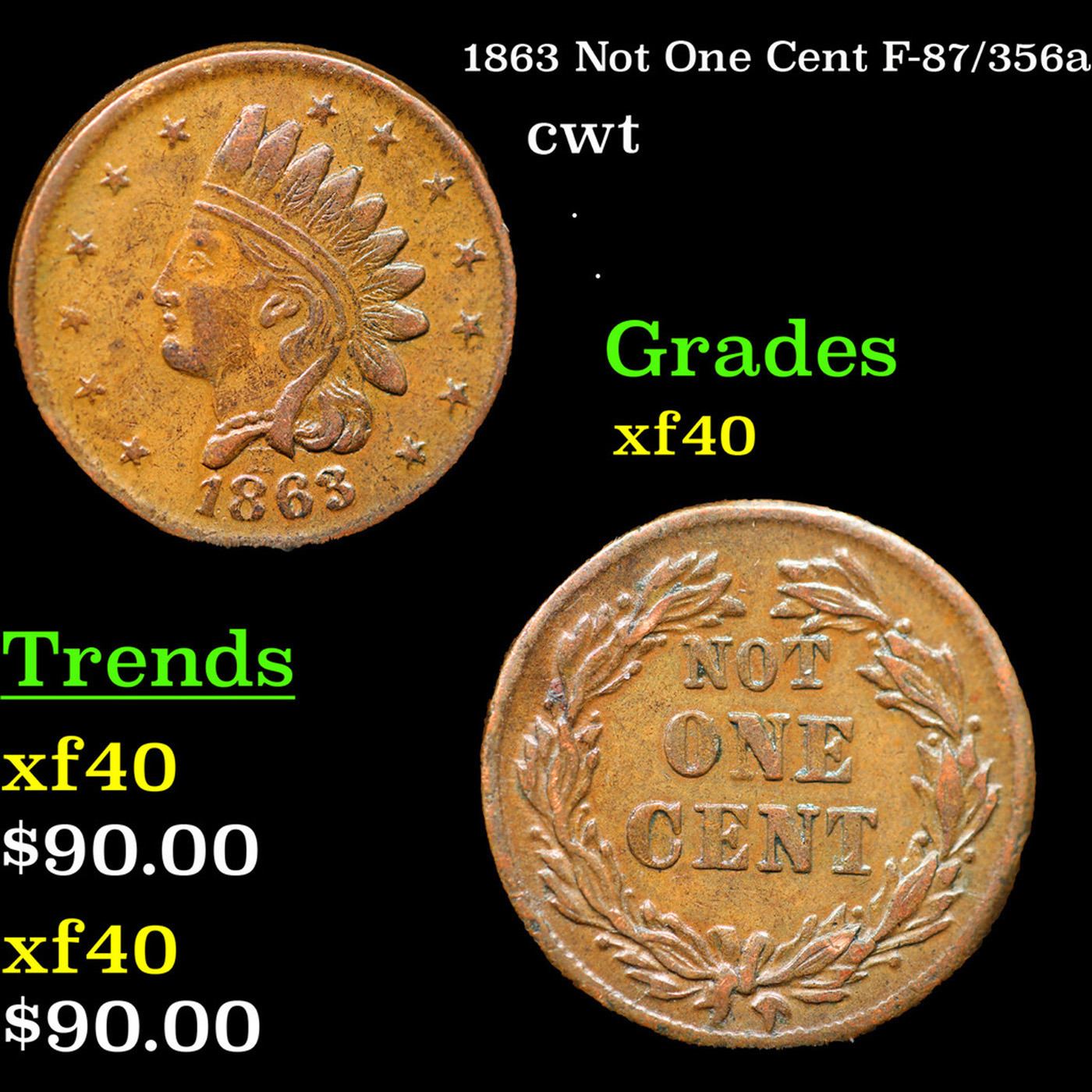 1863 Not One Cent F-87/356a Civil War Token 1c Grades xf.