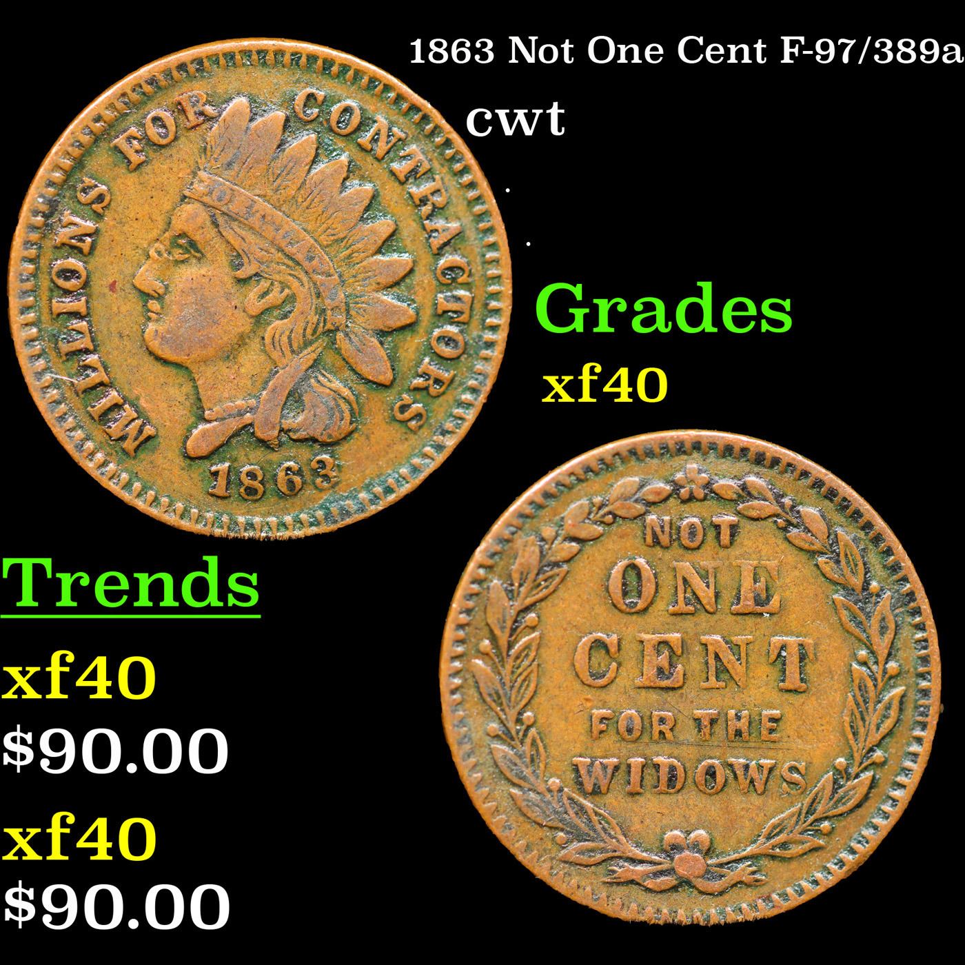1863 Not One Cent F-97/389a Civil War Token 1c Grades xf.
