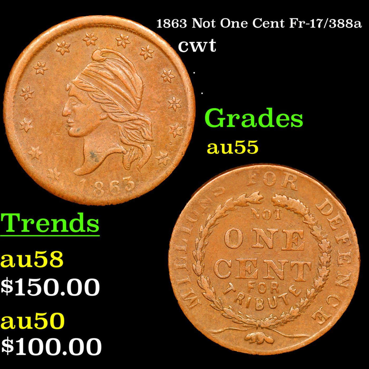 1863 Not One Cent Fr-17/388a Civil War Token 1c Grades Choice AU.