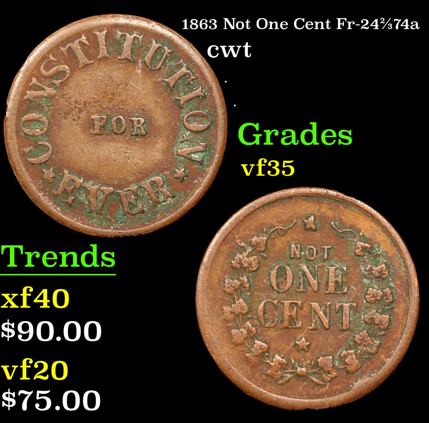 1863 Not One Cent Fr-242/374a Civil War Token 1c Grades vf++.