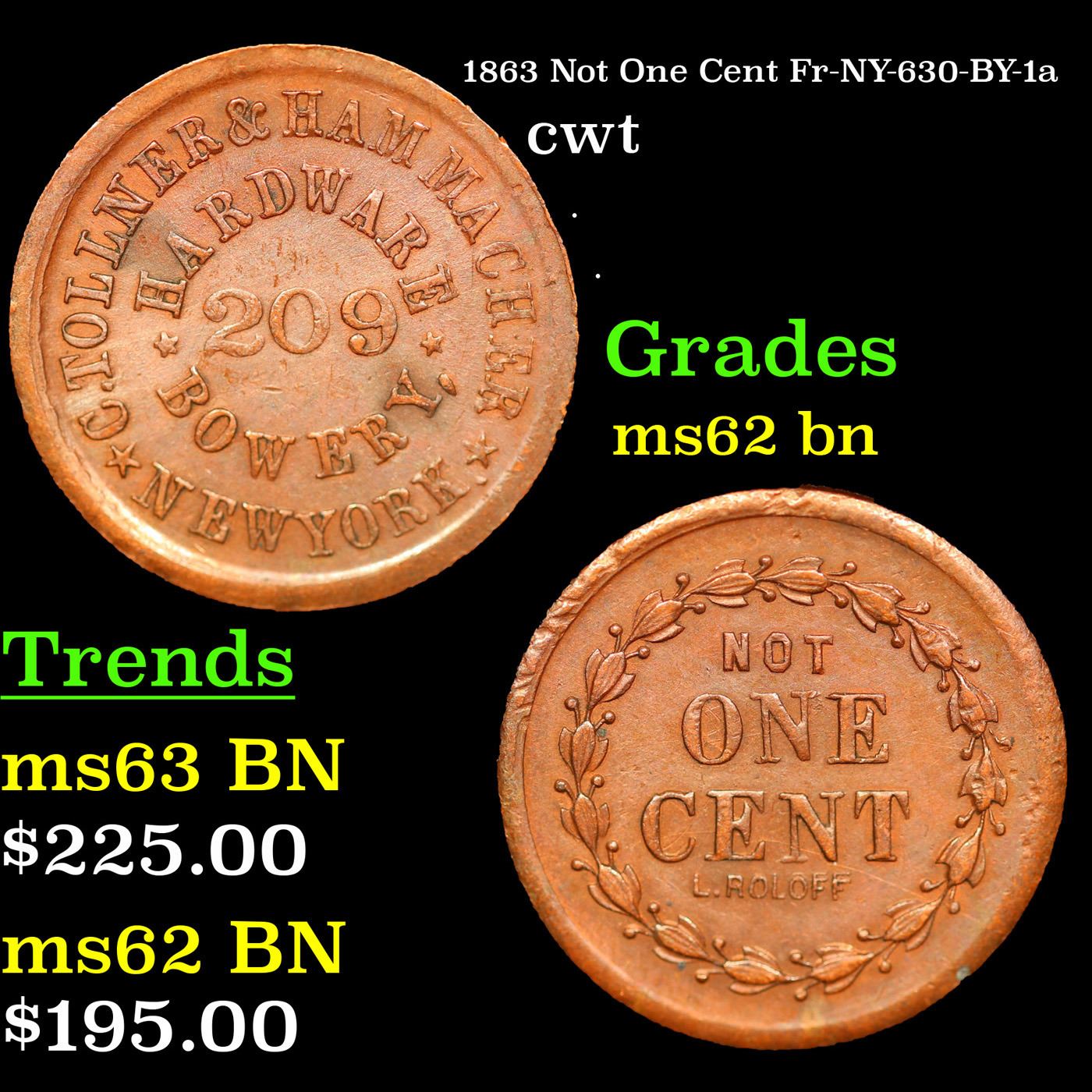 1863 Not One Cent Fr-NY-630-BY-1a Civil War Token 1c Grades Select Unc BN.