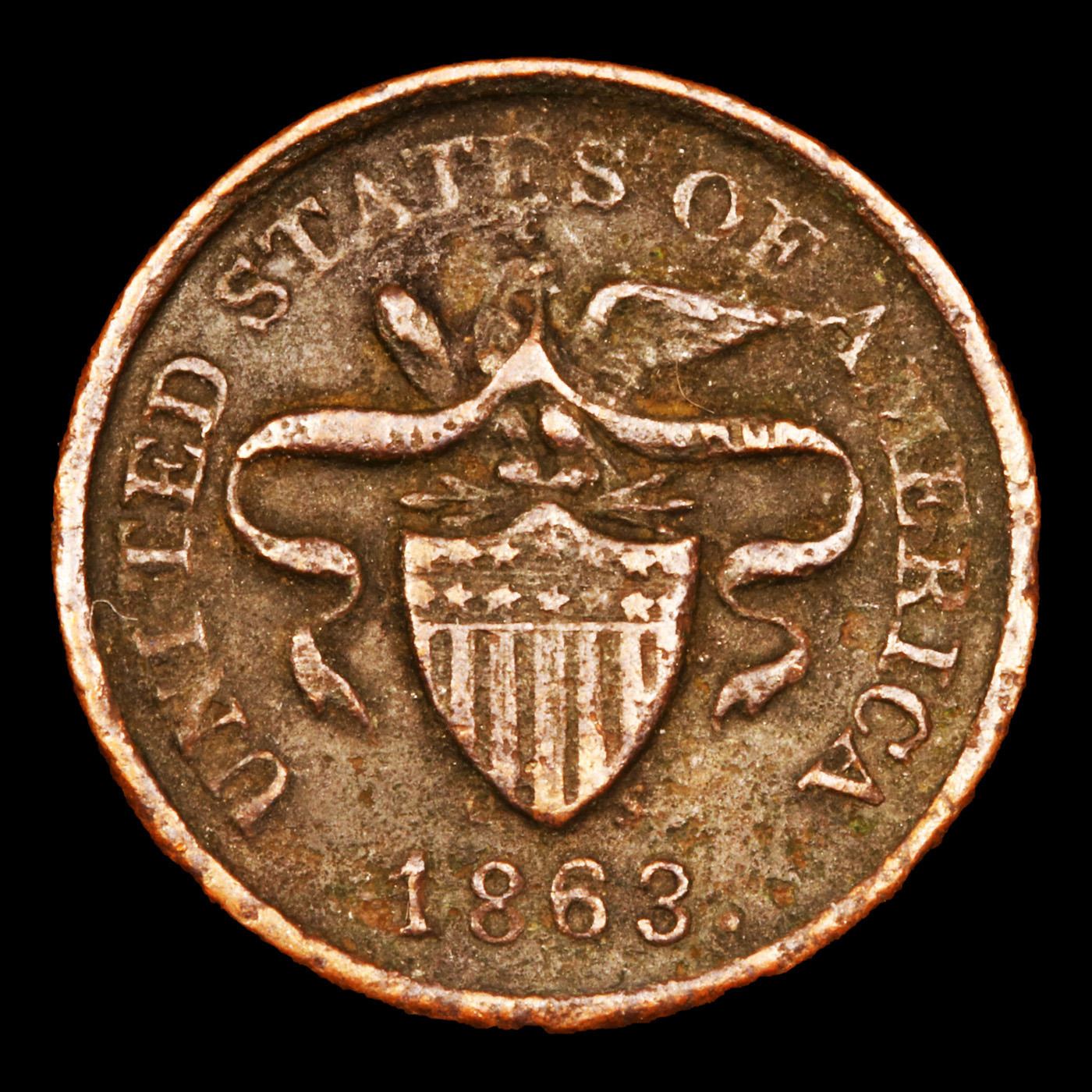 1863 Not One Cent F-197-380a R2 Civil War Token 1c Graded xf details. Obverse- United States Of America Reverse-Not one cent