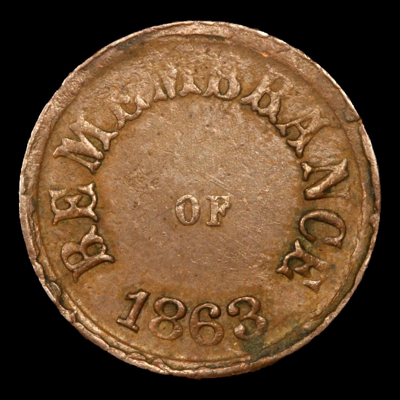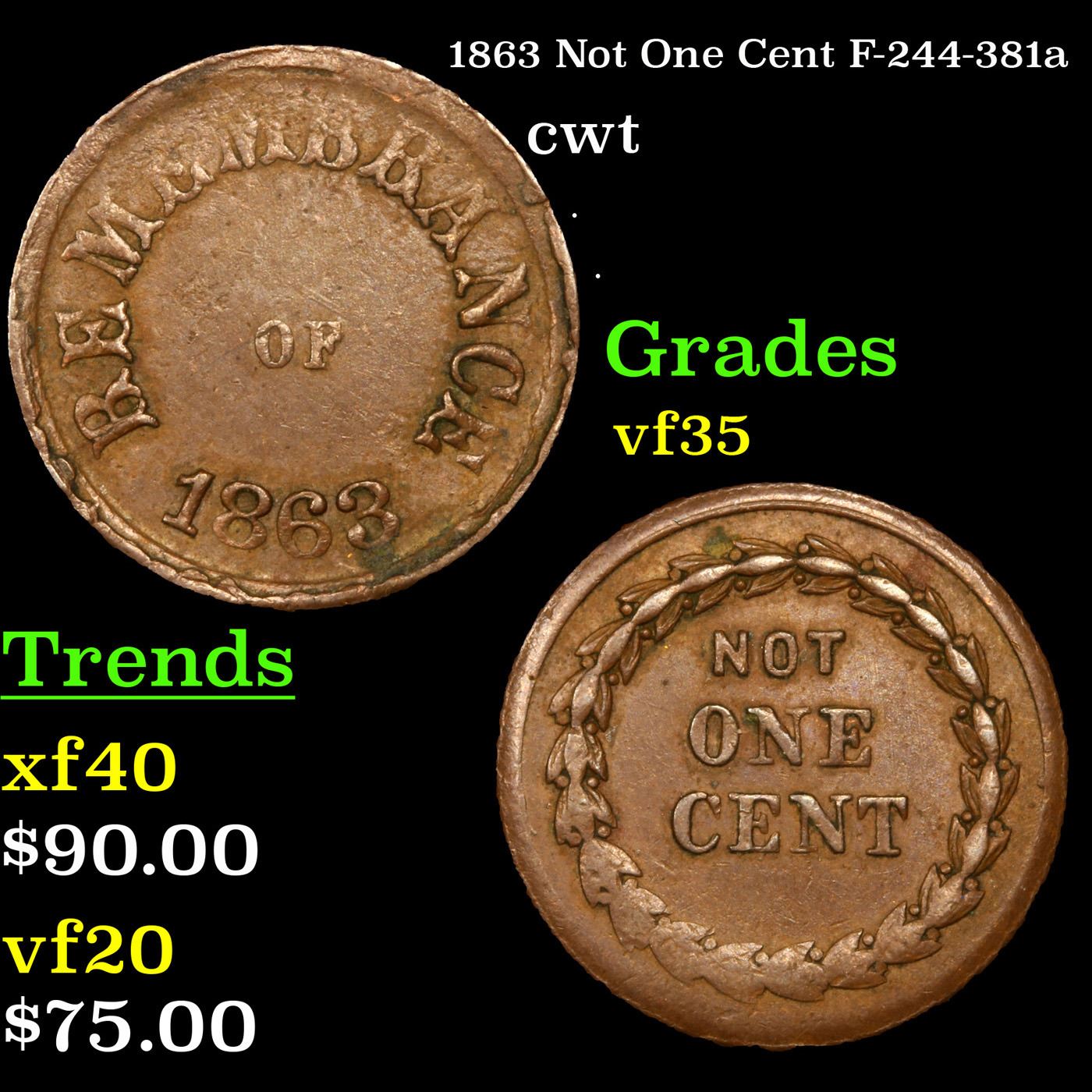 1863 Not One Cent F-244-381a Civil War Token 1c Grades vf++.