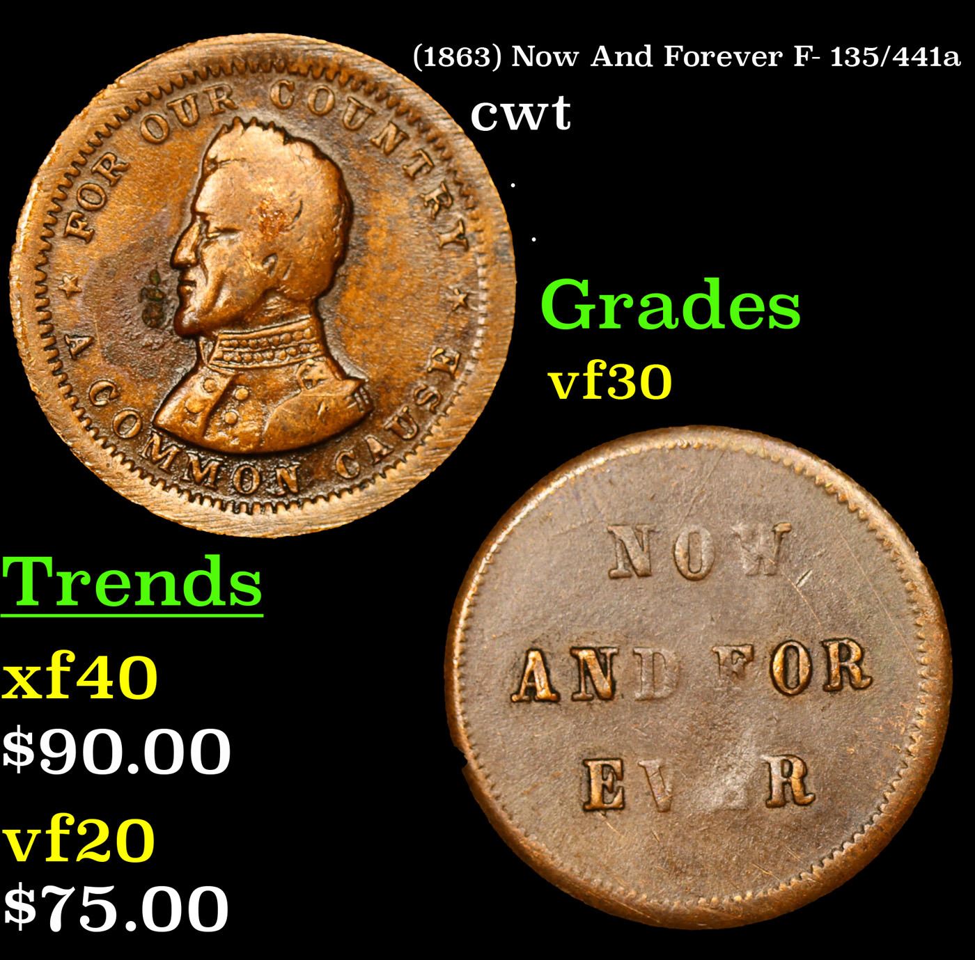 (1863) Now And Forever F- 135/441a Civil War Token 1c Grades vf++.