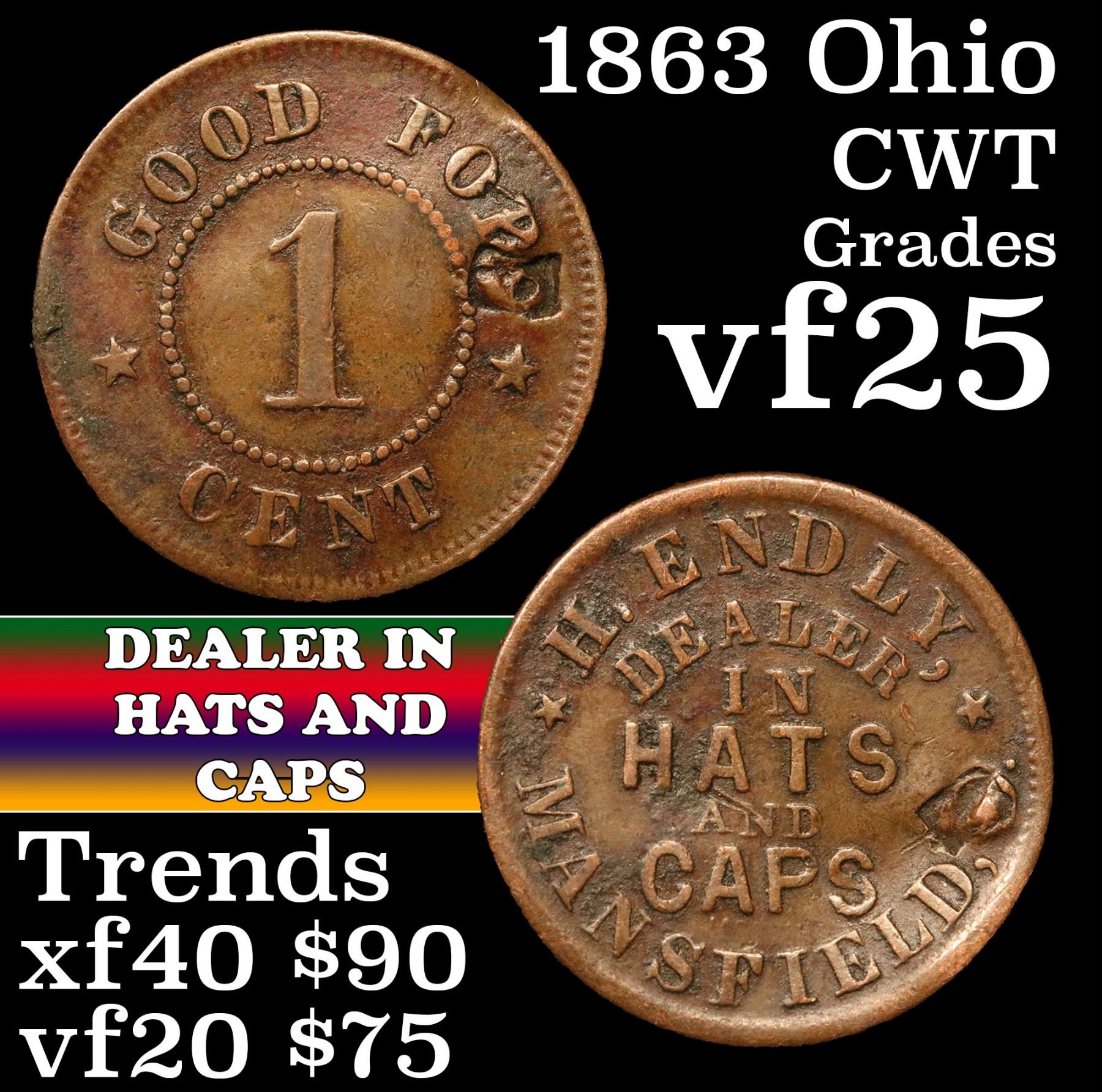 (1863) Ohio Civil War Token 1c Grades vf+.