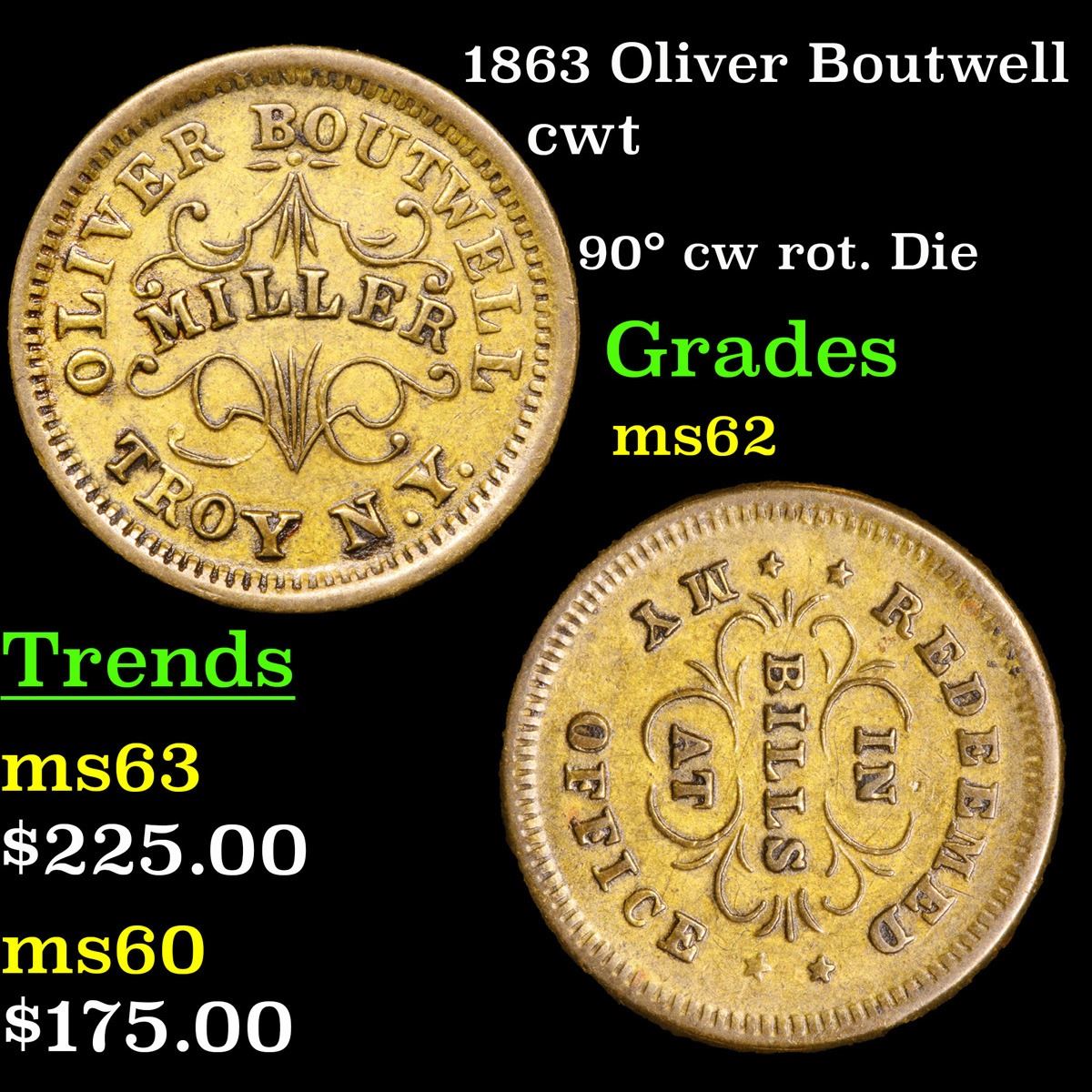 1863 Oliver Boutwell 90° cw rot. Die . Civil War Token 1c Grades Select Unc.