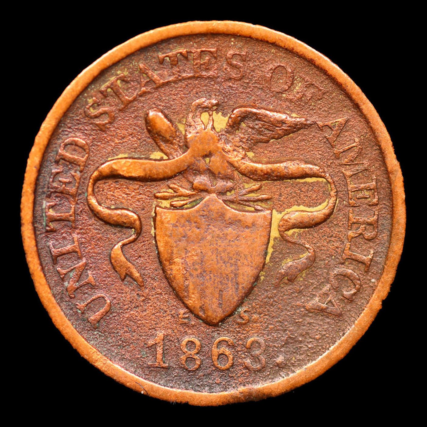 1863 One Cent Civil War Token 1c Grades vf+.