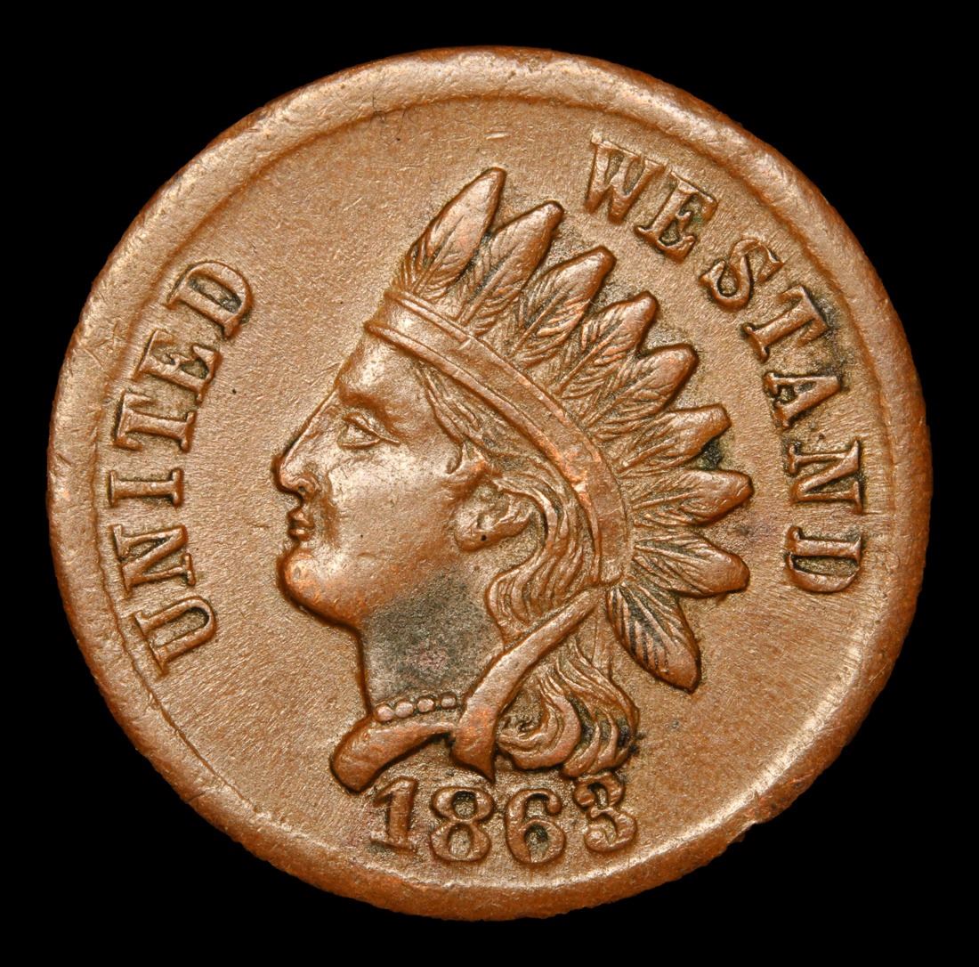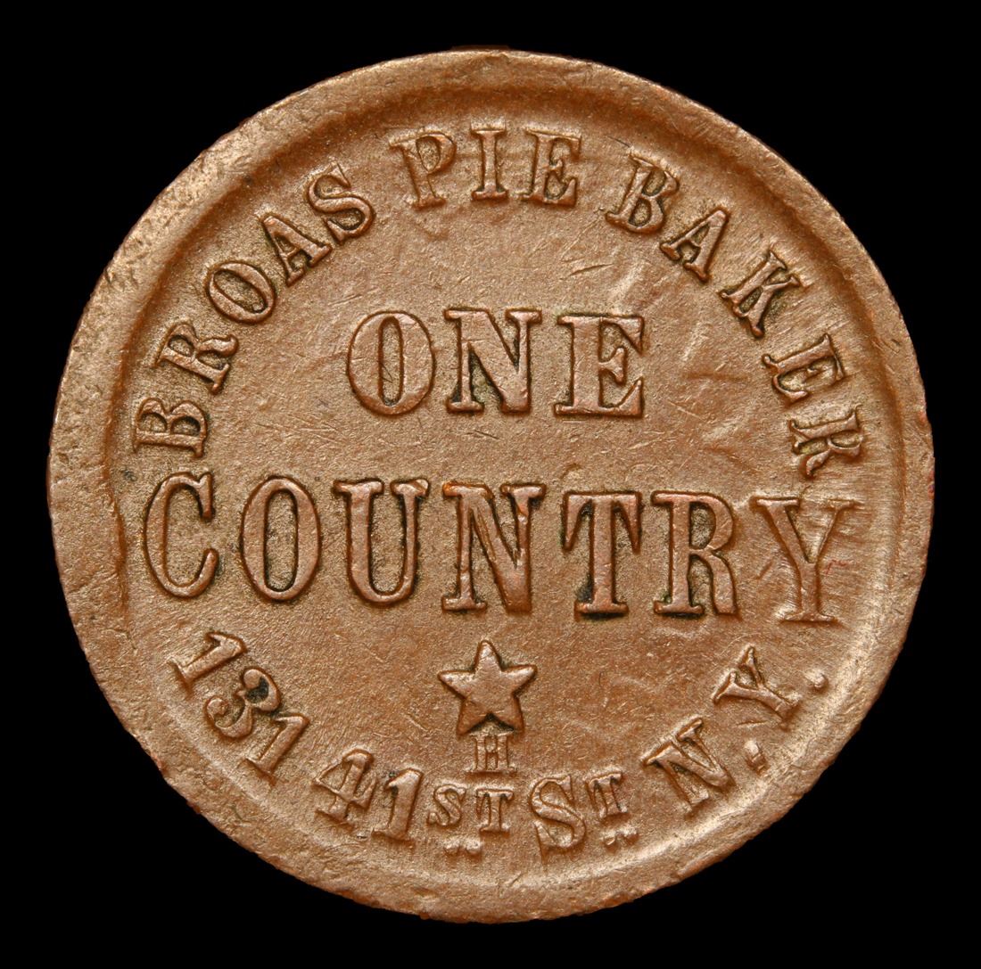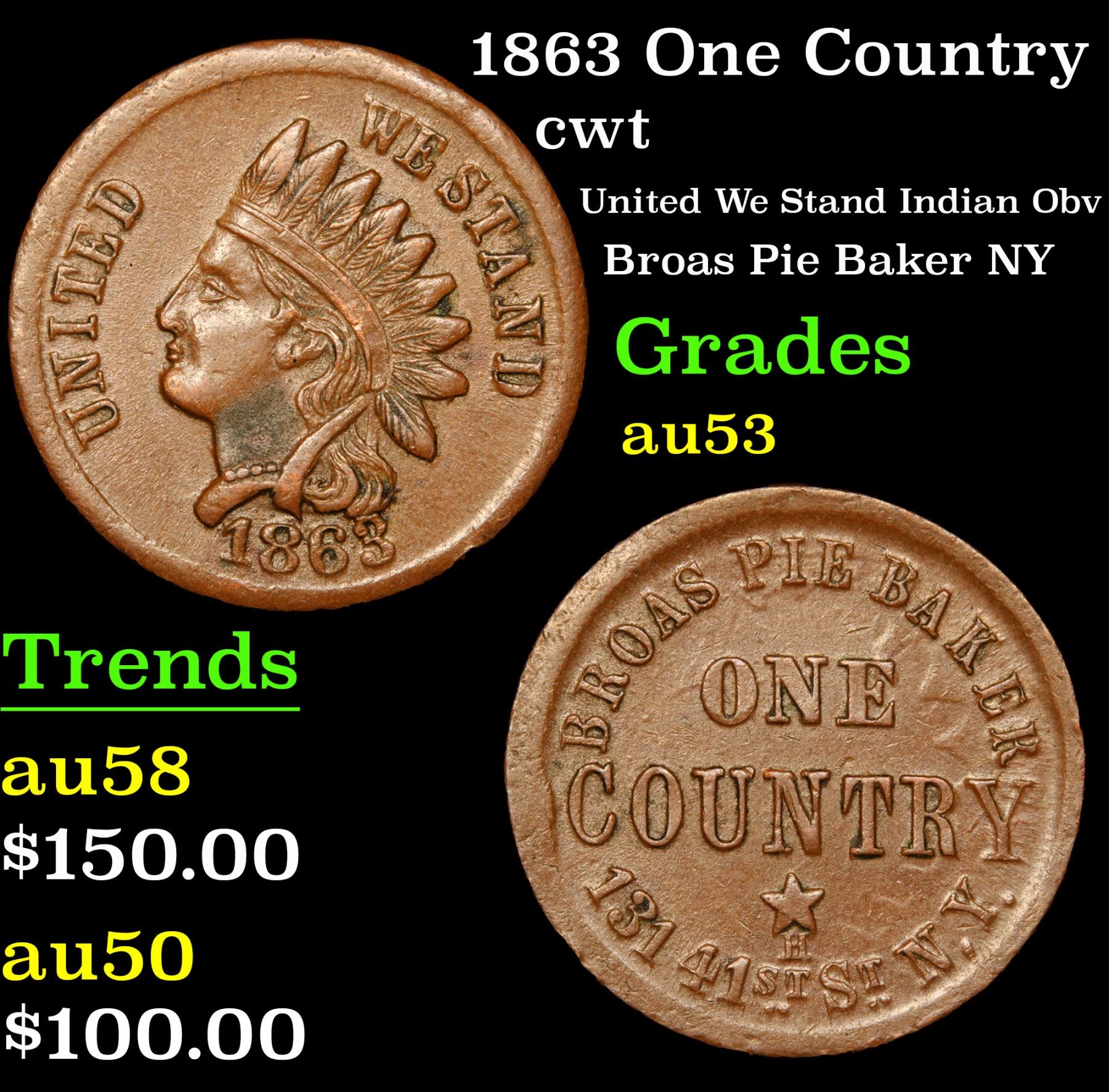 1863 One Country Civil War Token 1c Grades Select AU. United We Stand Indian Obv Broas Pie Baker NY