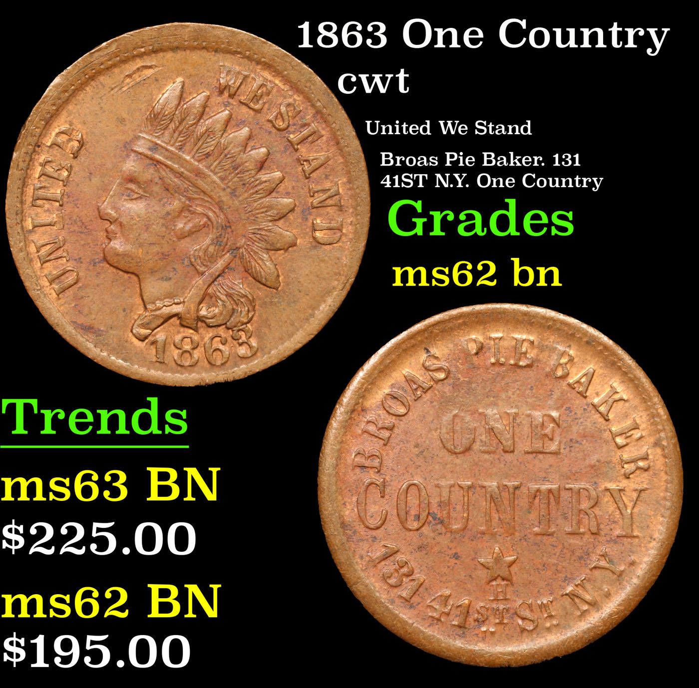 1863 One Country Civil War Token 1c Grades Select Unc BN.