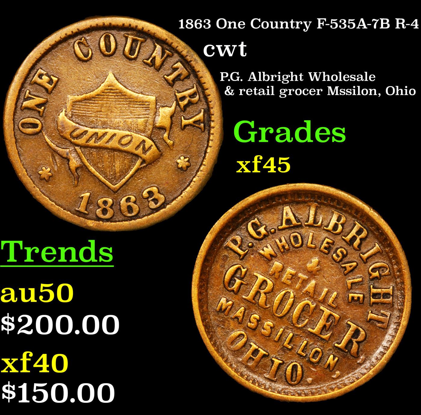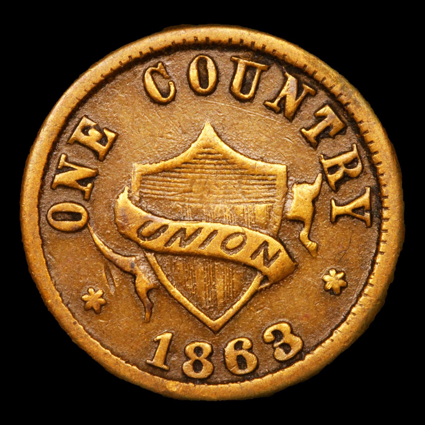 1863 One Country F-535A-7B R-4 Civil War Token 1c Grades xf+.