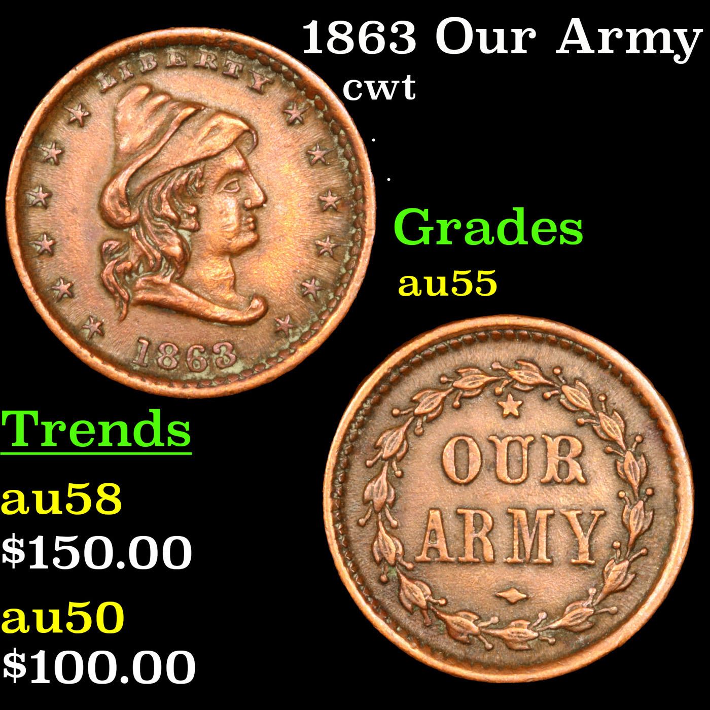 1863 Our Army Civil War Token 1c Grades Choice AU.
