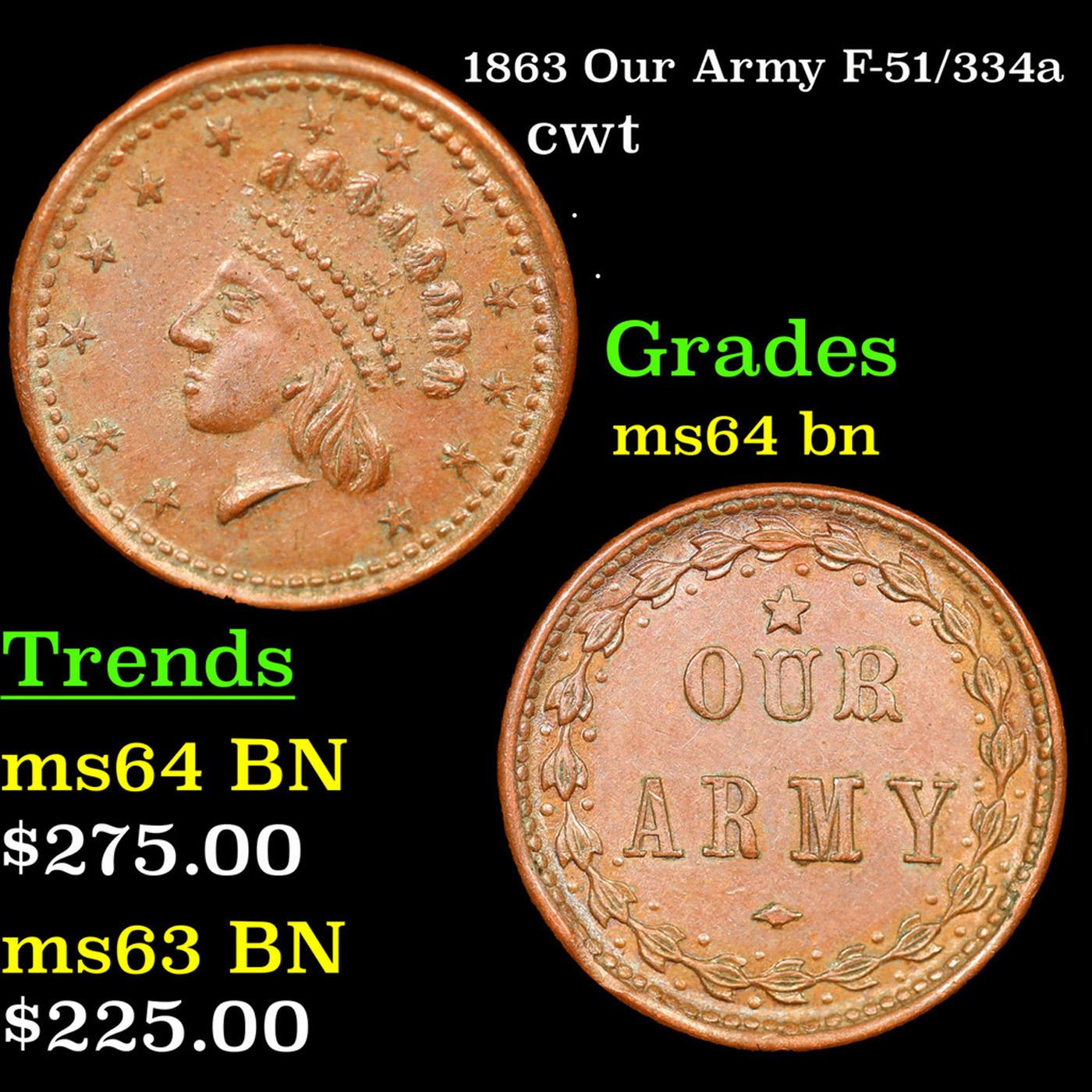 1863 Our Army F-51/334a Civil War Token 1c Grades Choice Unc BN.