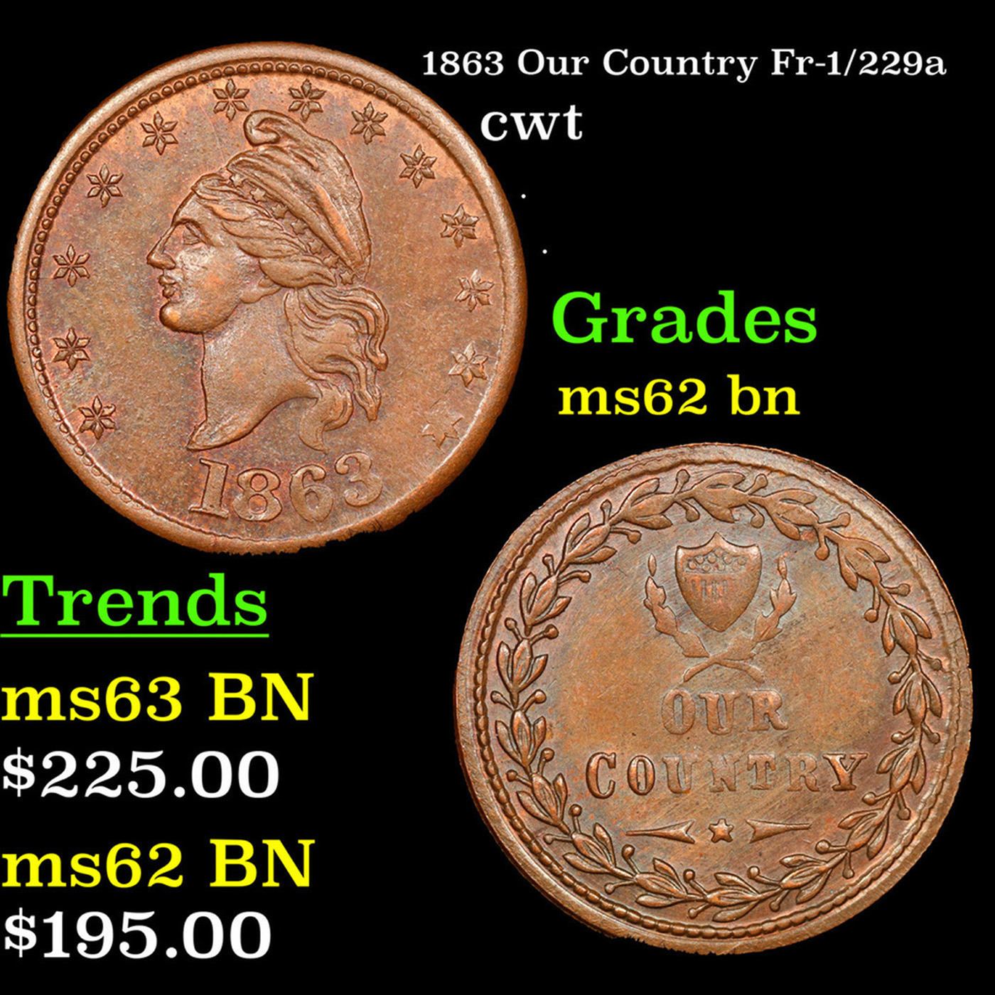 1863 Our Country Fr-1/229a Civil War Token 1c Grades Select Unc BN.