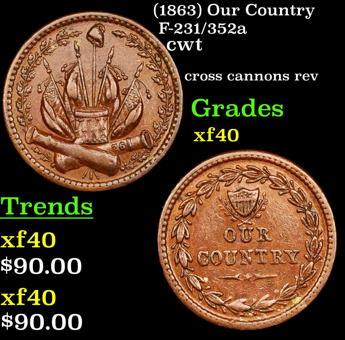 (1863) Our Country F-231/352a Civil War Token 1c Grades xf. Obverse: Our Country Reverse: Cross cannons