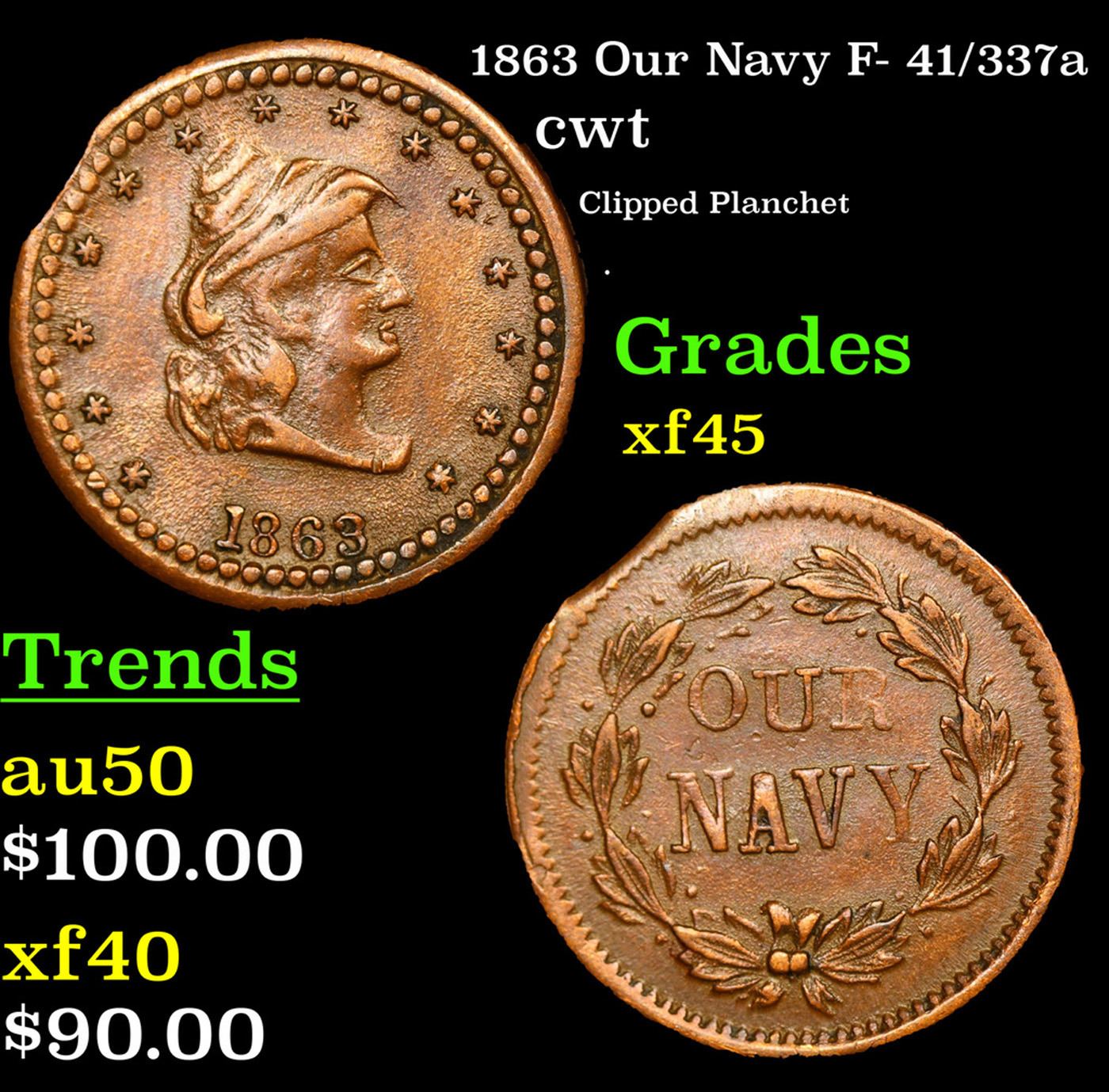 1863 Our Navy F- 41/337a Civil War Token 1c Grades xf+.