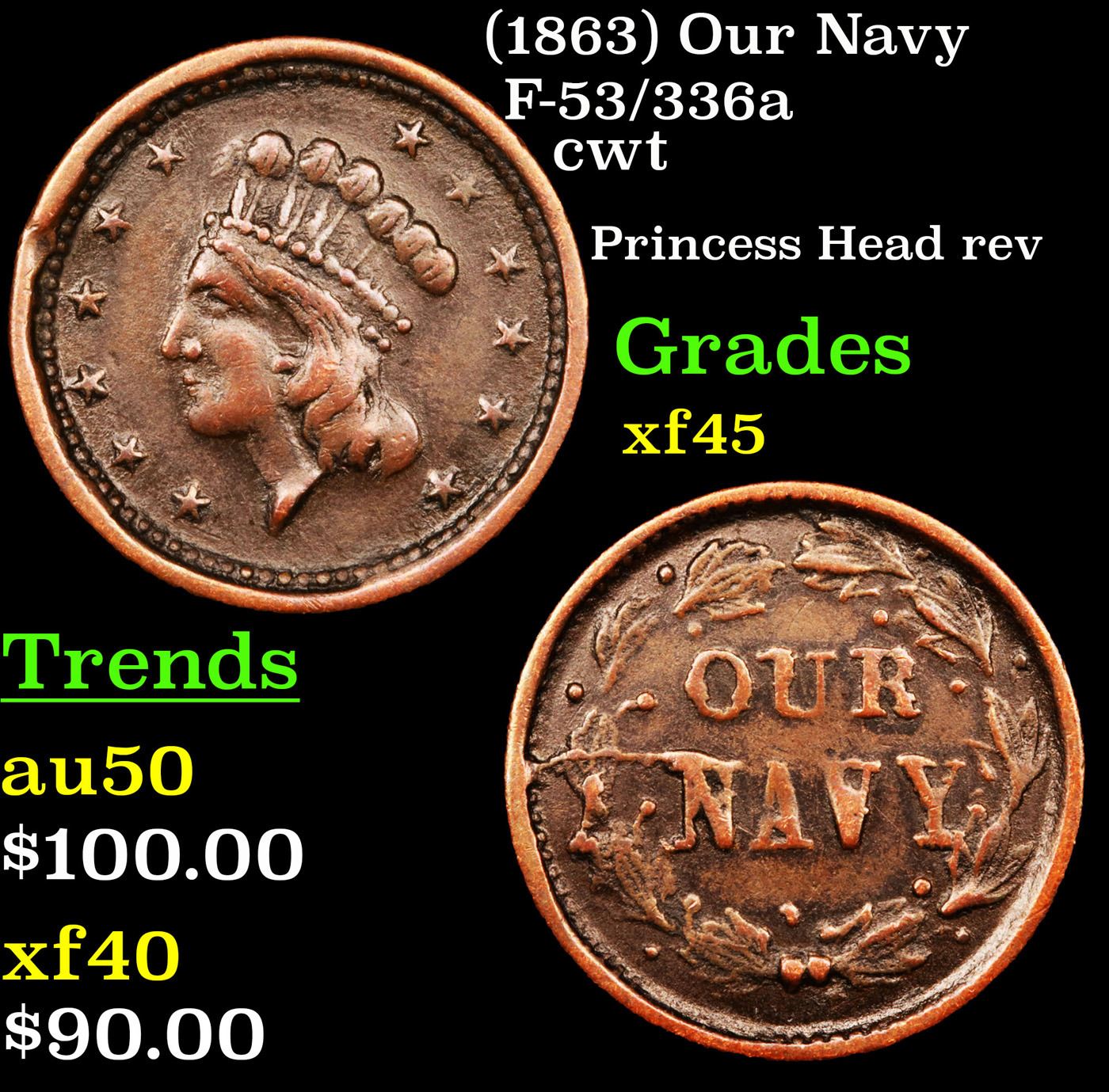 (1863) Our Navy F-53/336a Civil War Token 1c Grades xf+. Obverse: Our Navy Reverse: Princess Head
