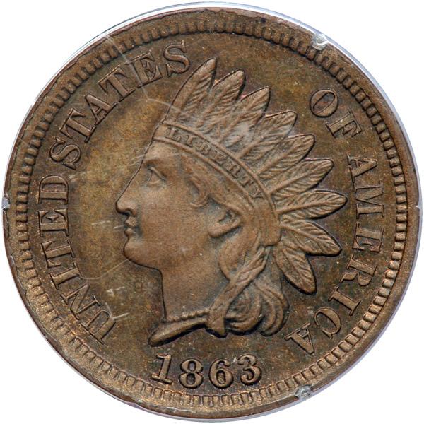 1863 Pattern Cent. Bronze, plain edge. Judd-299. Pollock-359. Rarity 3. PCGS graded Proof 66 Brown. A wonderful gem Proof with hints of light iridescense. In a 1st generation PCGS holder. Pop 7; none finer.