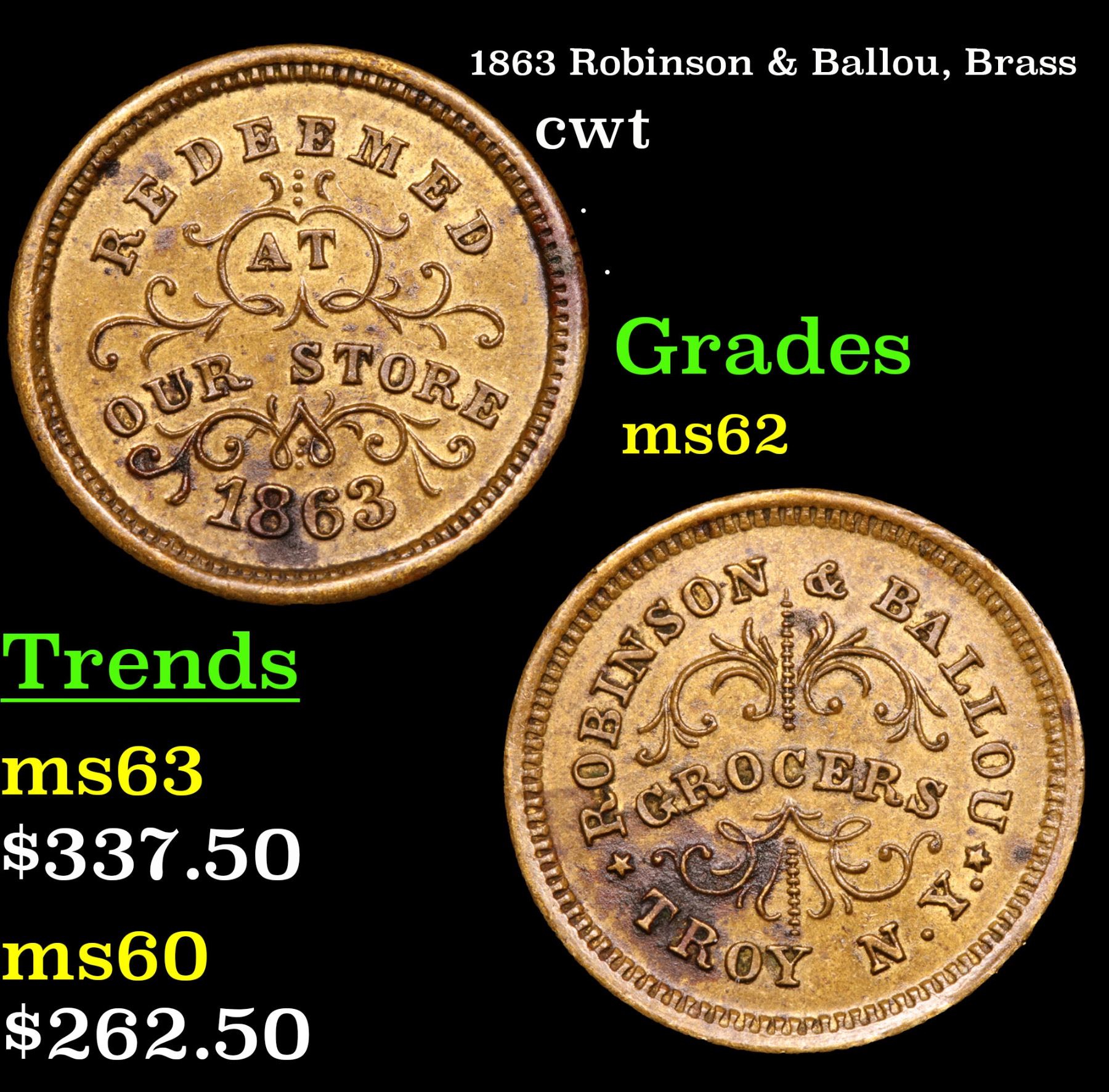 1863 Robinson & Ballou, Brass Civil War Token 1c Grades Select Unc