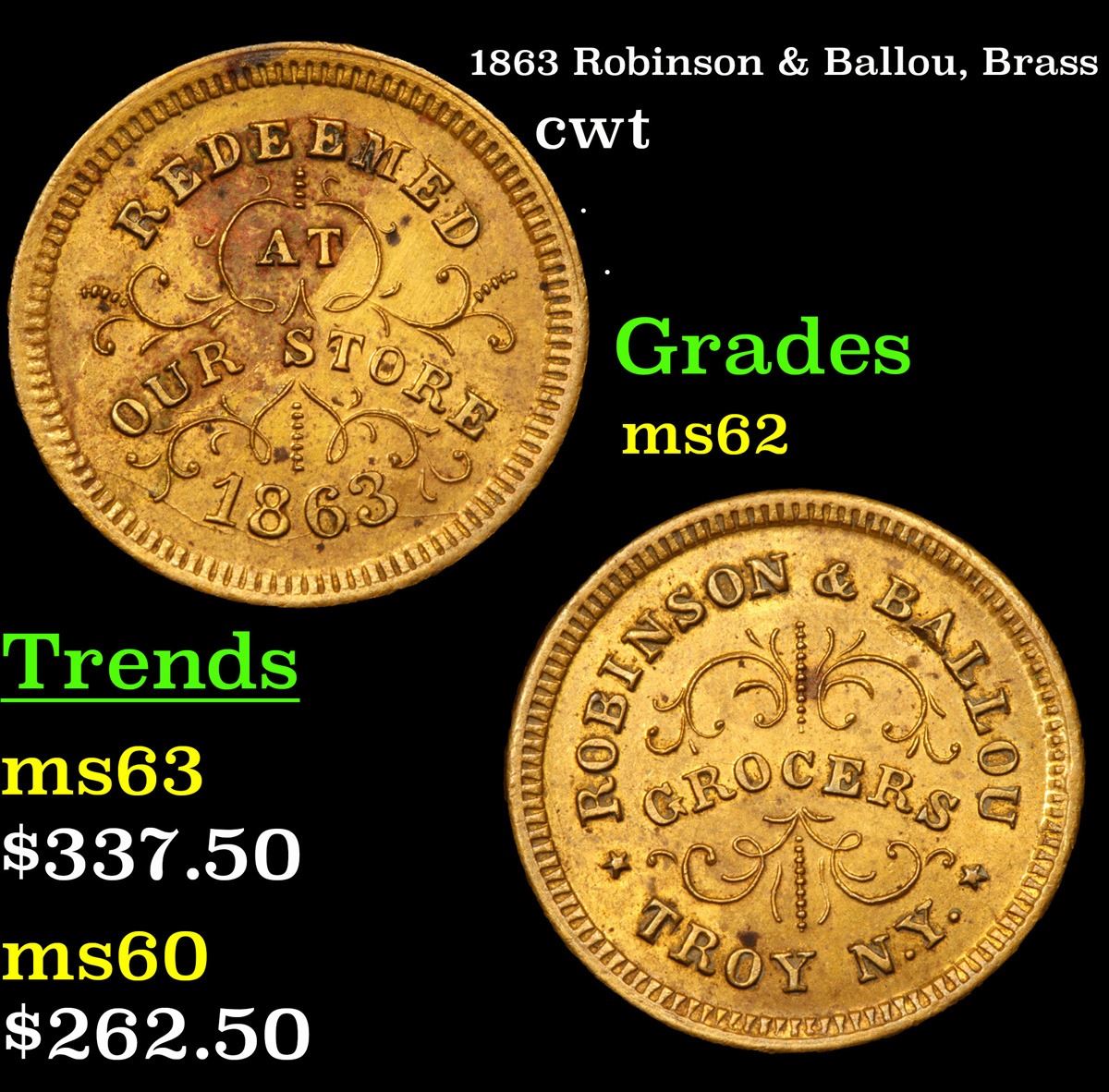 1863 Robinson & Ballou, Brass Civil War Token 1c Grades Select Unc