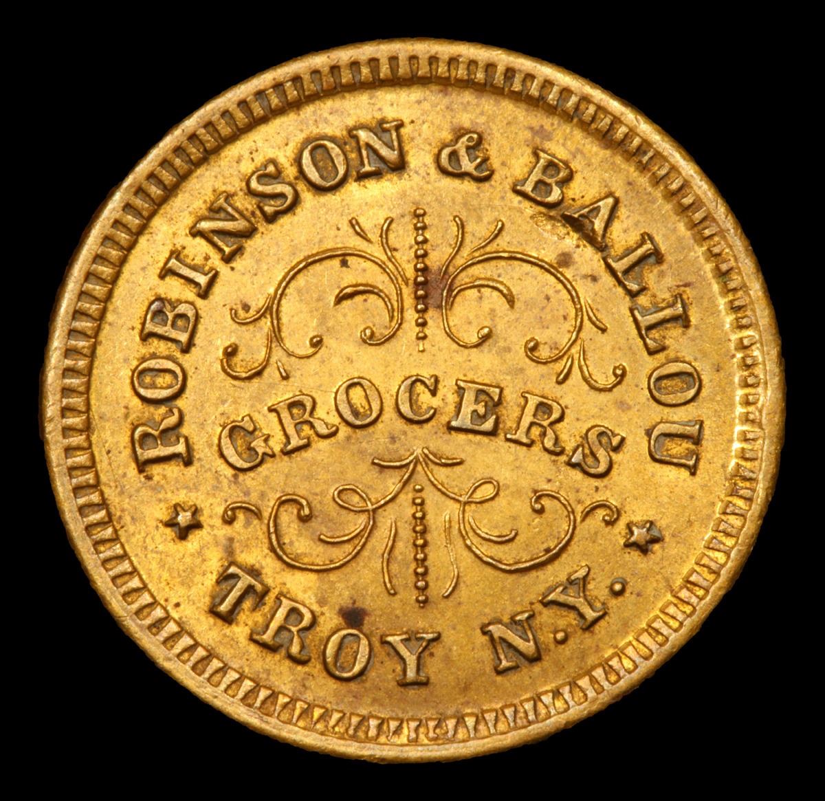 1863 Robinson & Ballou, Brass Civil War Token 1c Grades Select Unc.