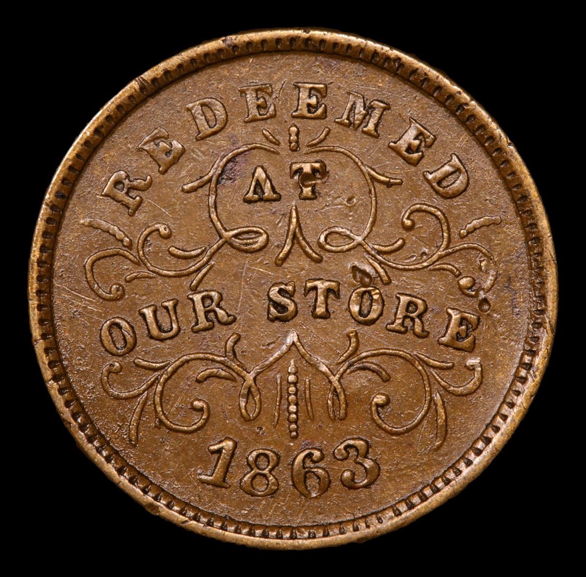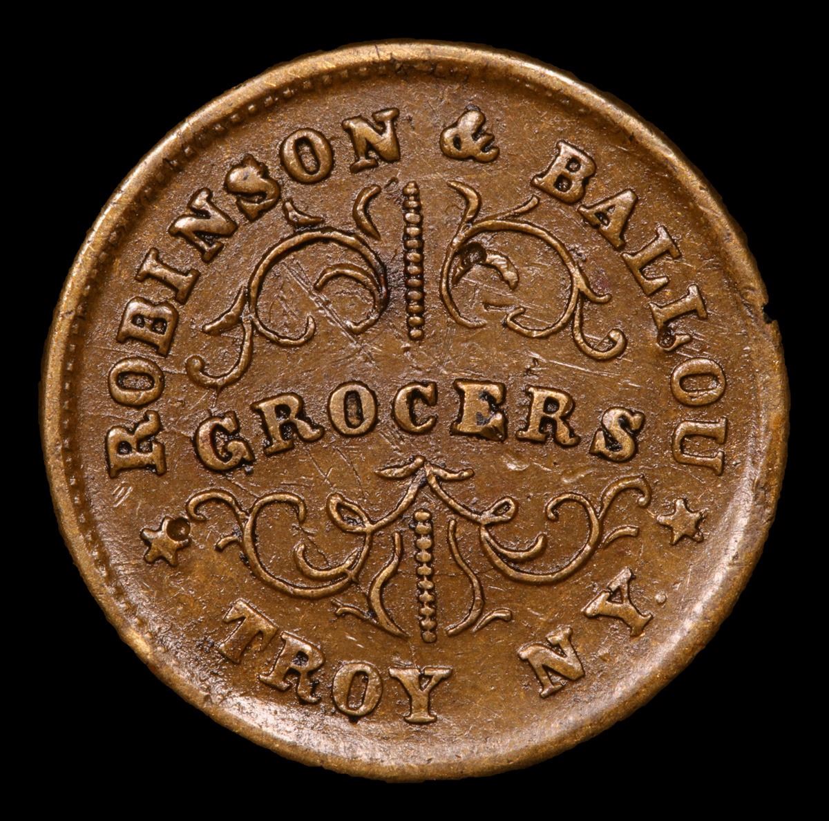 1863 Robinson & Ballou Redeemed at Our Store . Civil War Token 1c Grades xf+.