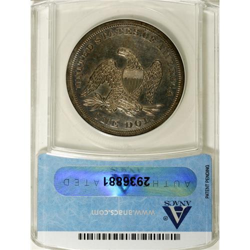 <B>1863 S$1 PR61 ANACS.</B></I> Deep blue-gray and olive-gray patina covers both sides of this exactingly struck proof. A significantly hairlined but important survivor from this important Civil War issue.<BR><BR><b>Shipping:</b> Coins & Currency (<a target="_blank" href="http://www.heritageauctions.com/common/shipping.php">view shipping information</a>)