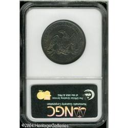 1863-S 50C AU58 NGC. Sea-green and maroon colors e <B>1863-S 50C AU58 NGC.</B></I> Sea-green and maroon colors embrace the reverse, while the obverse has lightly toned centers and peripheral freckles of apple-green patina. An impressive, lustrous slider. A mark near the second star is barely worthy of mention. Only faint wear on the knee prevents a much higher grade. <BR><BR><B>Important notice:</B> Heritage usually auctions material at the rate of 200-250 lots per hour. On some occasions eBay Live bid software or the Internet may not be able to keep up with the pace of the auction. We recommend placing a realistic absentee bid now as insurance to avoid disappointment. Occasionally the auctioneer may eliminate or reject an eBay Live bid, and the auctioneer may also reopen a lot after the close of the eBay live bidding (usually because we missed an audience bid), and may reject your bid even if it shows you as the winning bidder. By bidding via eBay Live, you agree that Heritage may award the lot to another bidder at its sole discretion under the circumstances described above or any other reasonable circumstances. Since eBay bids are not shown to us until we open the lot on the floor, we treat those bids just like floor bids. In most cases the floor responds before the eBay bid is presented to us, due to Internet lag time, so for consistency we have made it a policy that floor bids are always considered first over tie eBay live bids. Also please note that all Heritage lots purchased through eBay Live carry a 20% Buyer's Premium. Please make sure you read the Terms and Conditions before you bid. This lot is being auctioned in conjunction with a live floor auction by Heritage Galleries & Auctioneers. All final auction and invoice information will be supplied by Heritage Galleries & Auctioneers, and all other information should be considered preliminary. Lot:6095