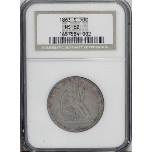 1863-S 50C MS62 NGC. Due to a defective punch, the upp