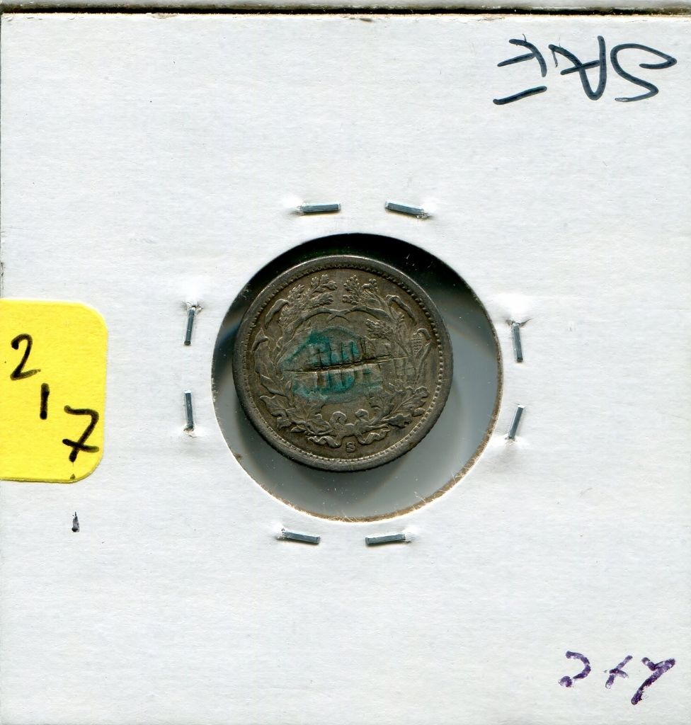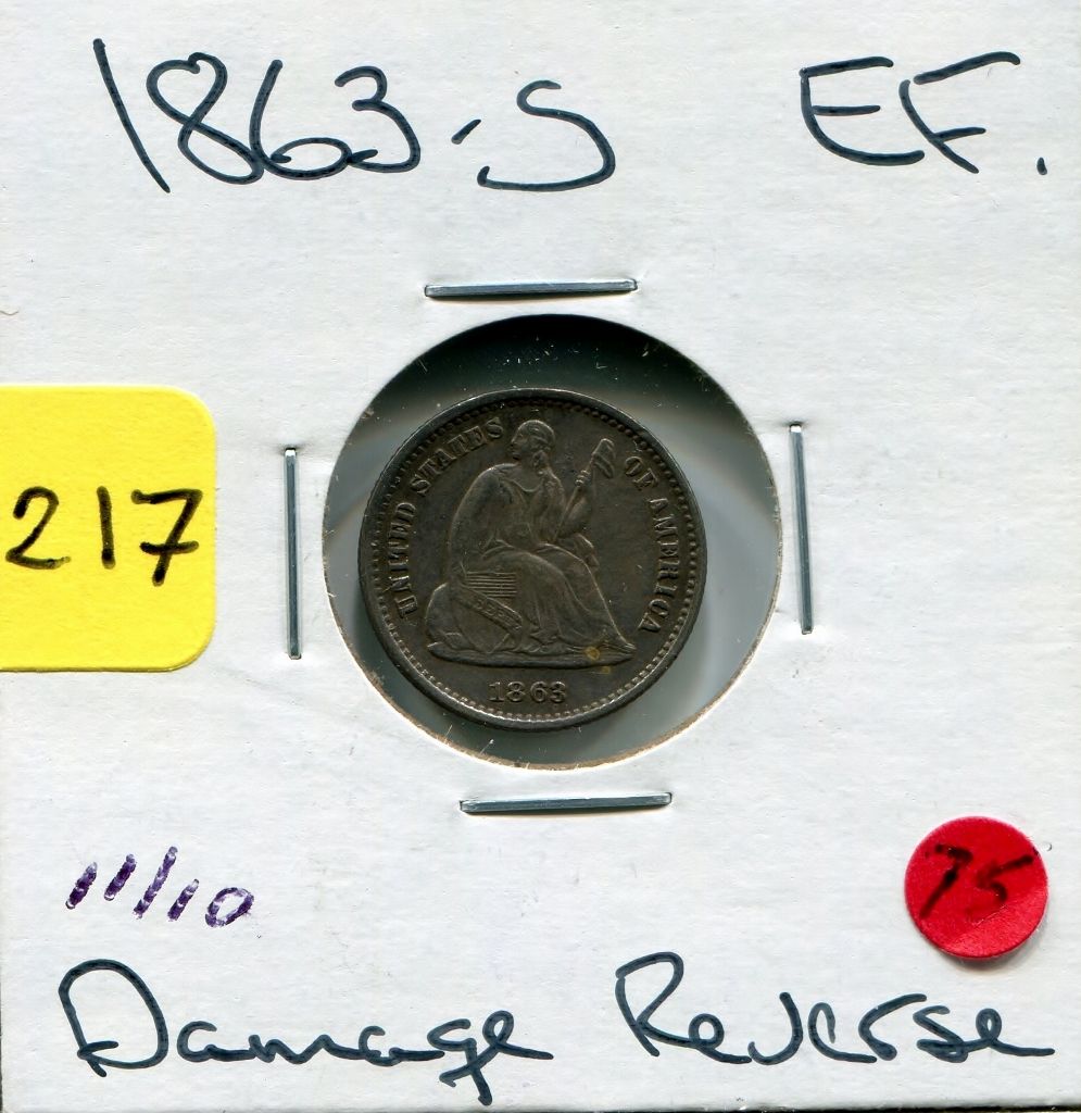 Listed in EF condition with damage on the reverse and a 2010 sales price of $75. Civil War era coin.