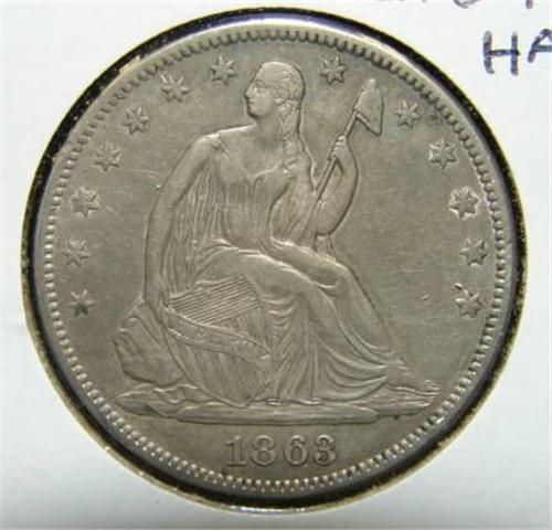 1863 SEATED LIBERTY HALF DOLLAR. AU.