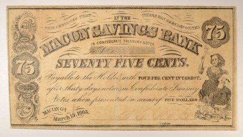 1863 SEVENTY FIVE CENT MACON, GA (MACON SAVINGS BANK) NOTE