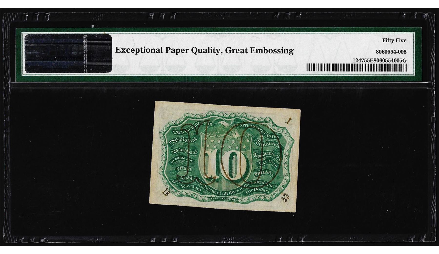 One 1863 Second Issue 10 Cent Fractional Currency Note Fr.1247 PMG About Uncirculated 55EPQ. PMG Certified.