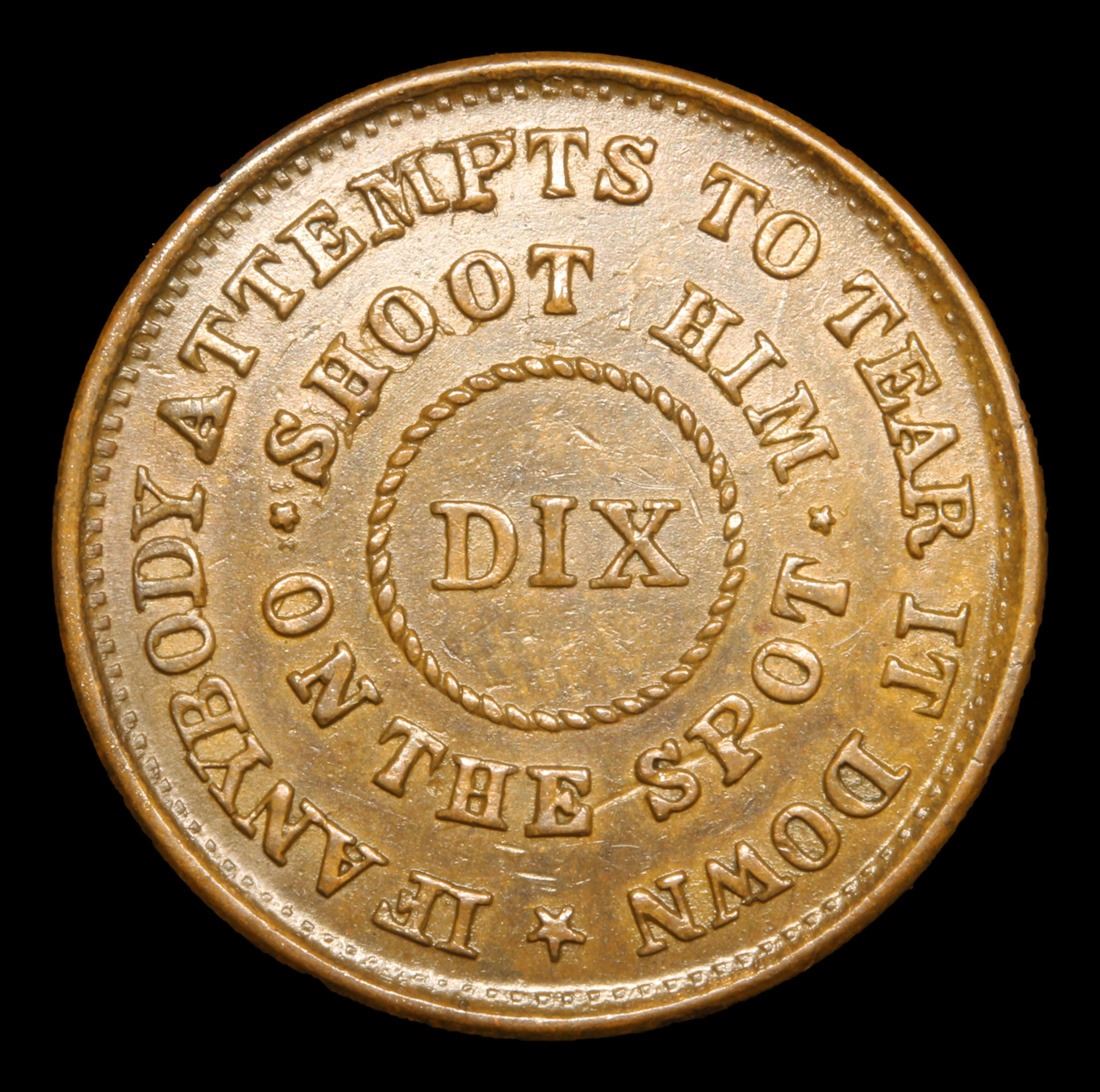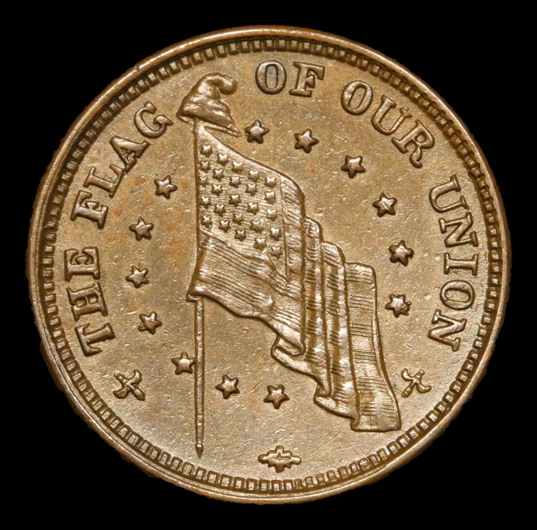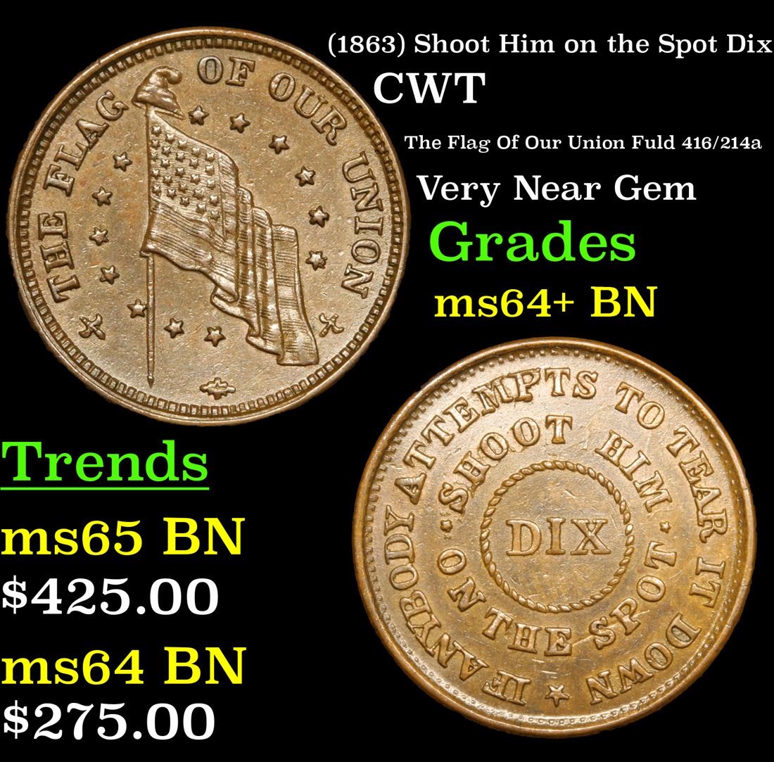 (1863) Shoot Him on the Spot Dix The Flag Of Our Union Fuld 416/214a Very Near Gem Civil War Token 1c Grades Choice+ Unc BN. Harder To Find Die Varity No Outer Circle, No date On Obv