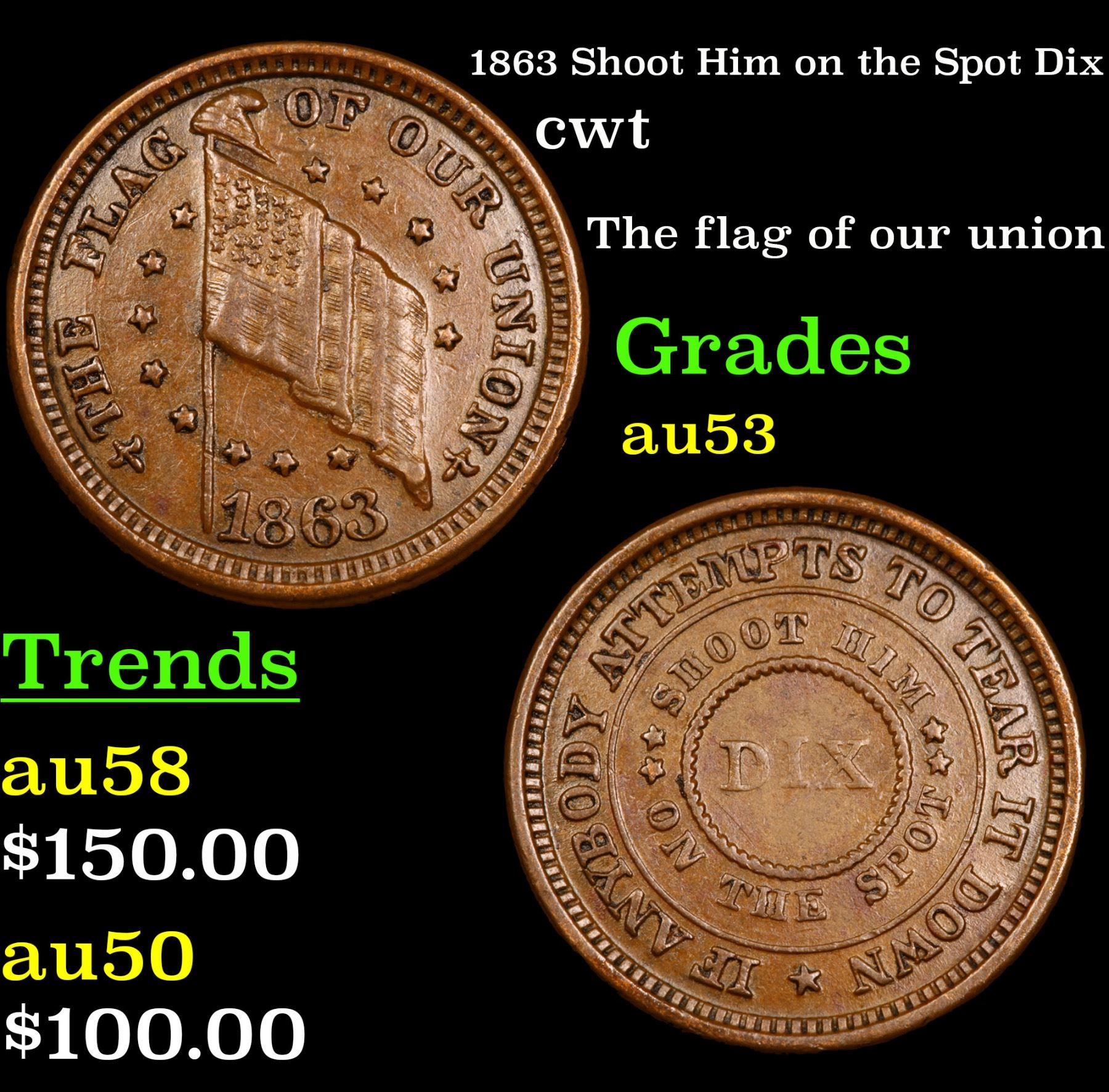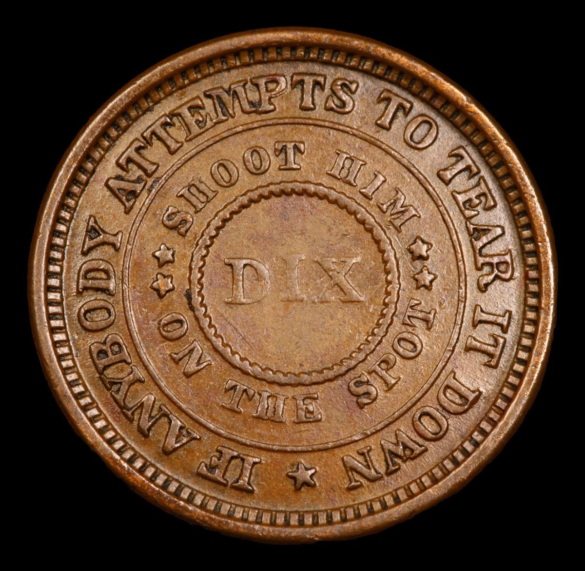 1863 Shoot Him on the Spot Dix Civil War Token 1c Grades Select AU.