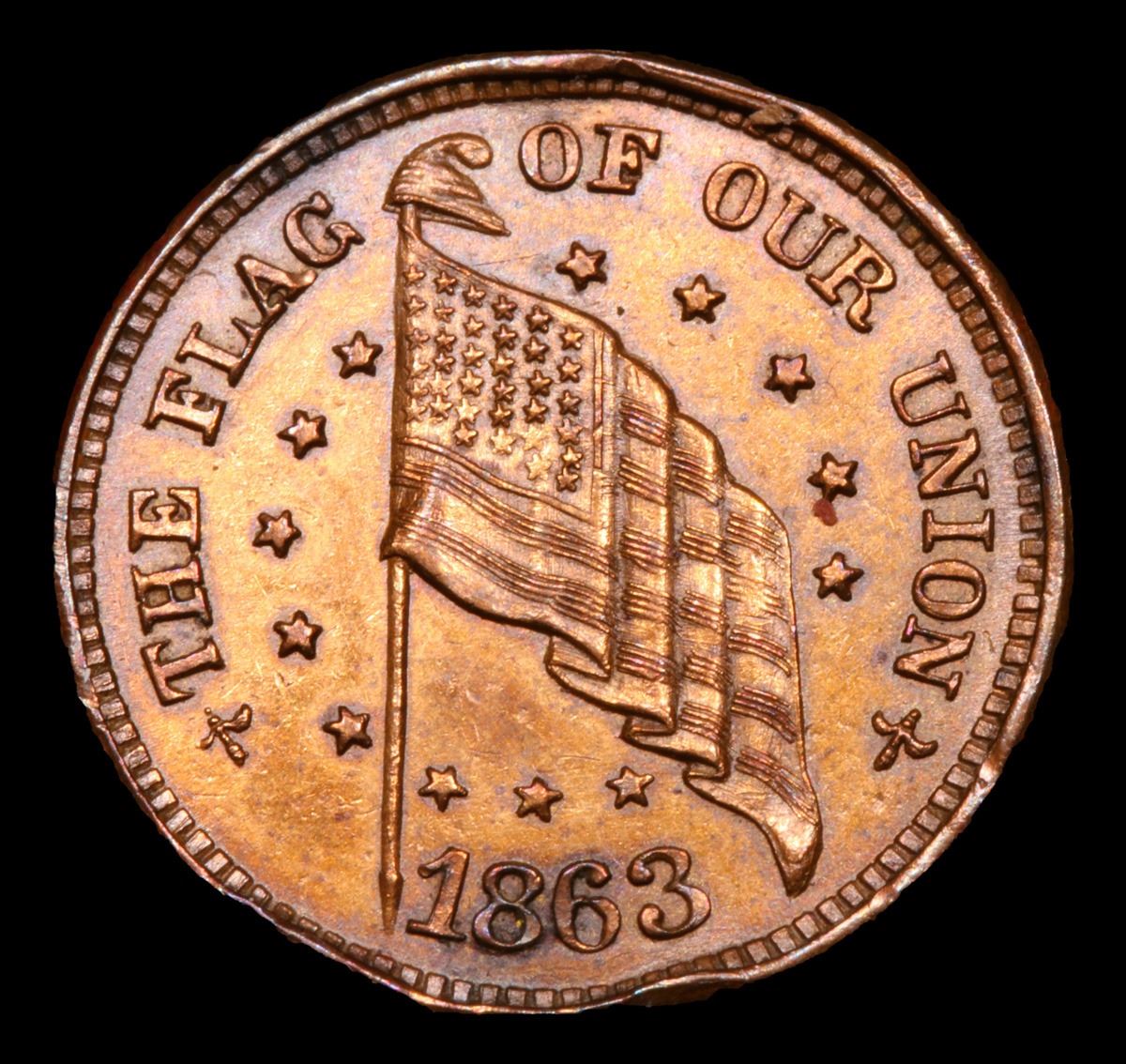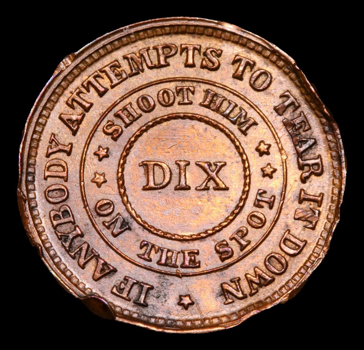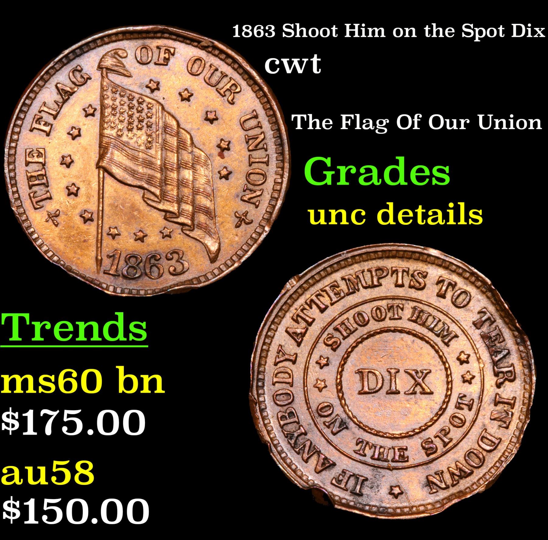 1863 Shoot Him on the Spot Dix The Flag Of Our Union . Civil War Token 1c Grades Unc Details.