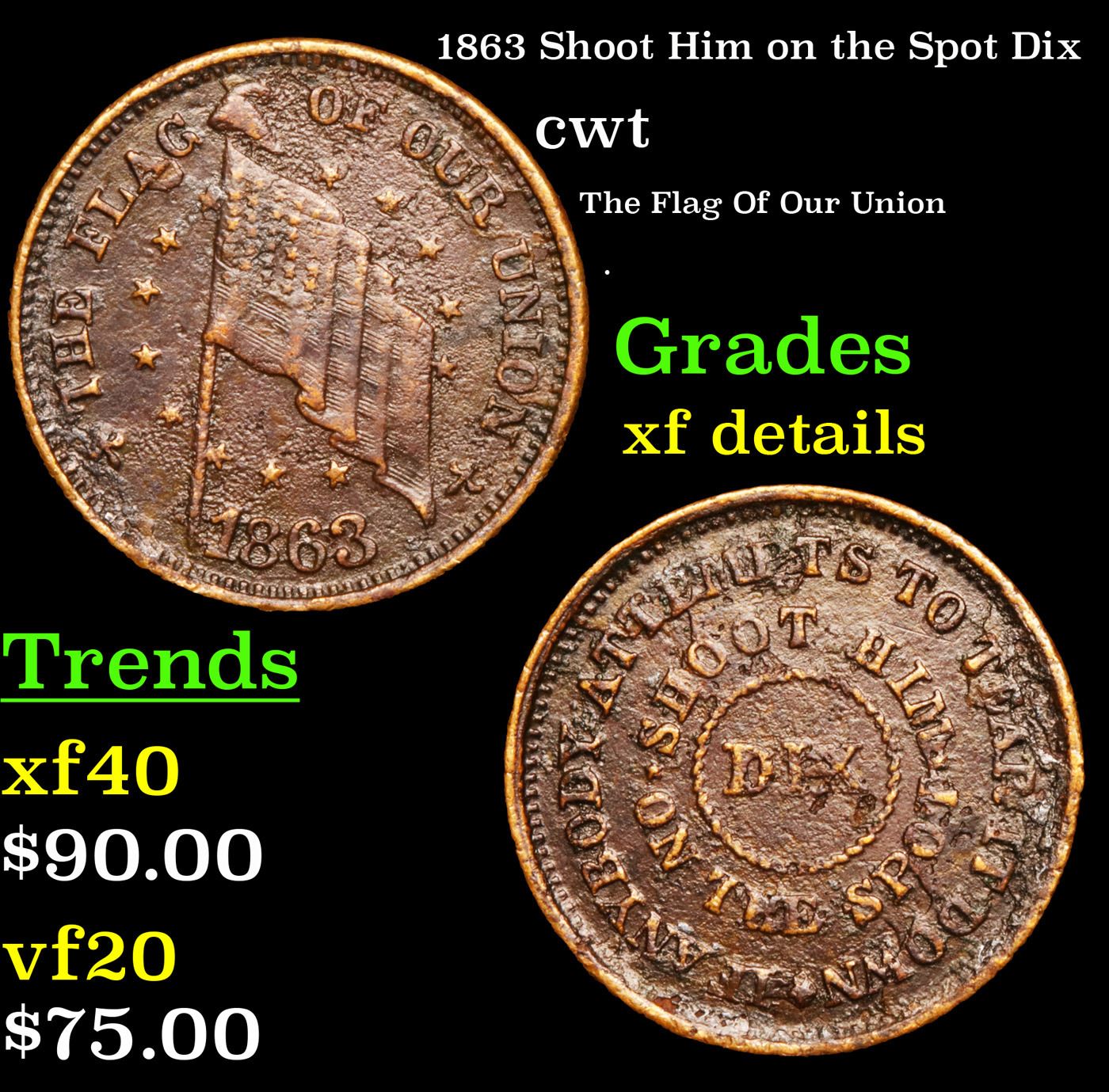 1863 Shoot Him on the Spot Dix Civil War Token 1c Grades xf details.