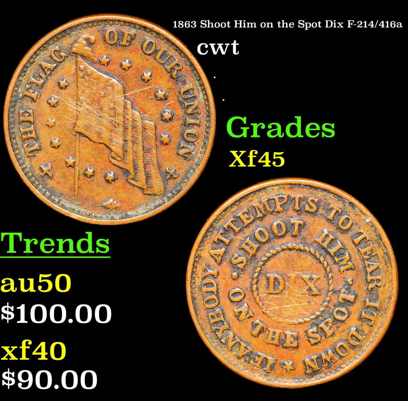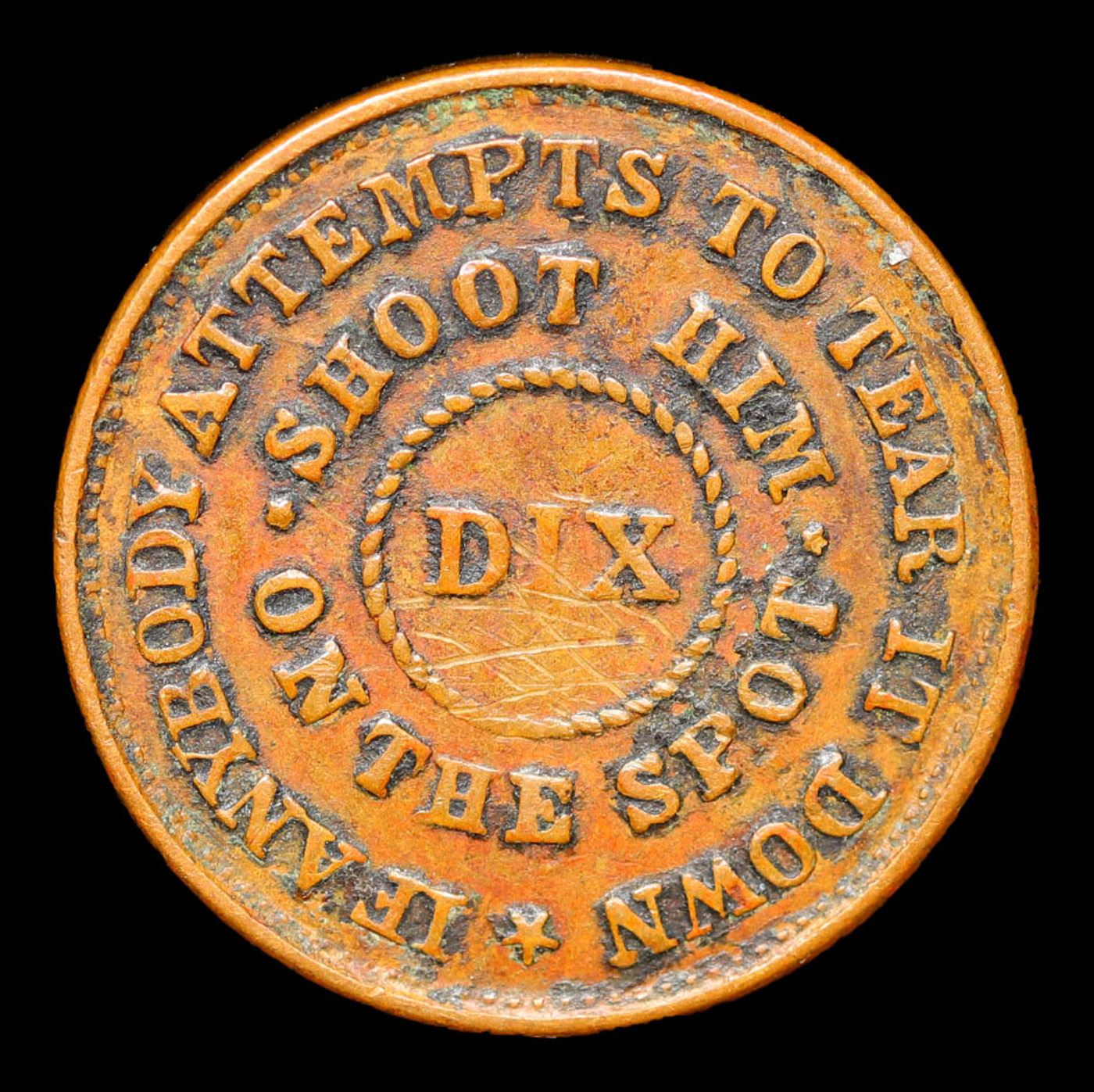 1863 Shoot Him on the Spot Dix F-214/416a Civil War Token 1c Grades xf+.