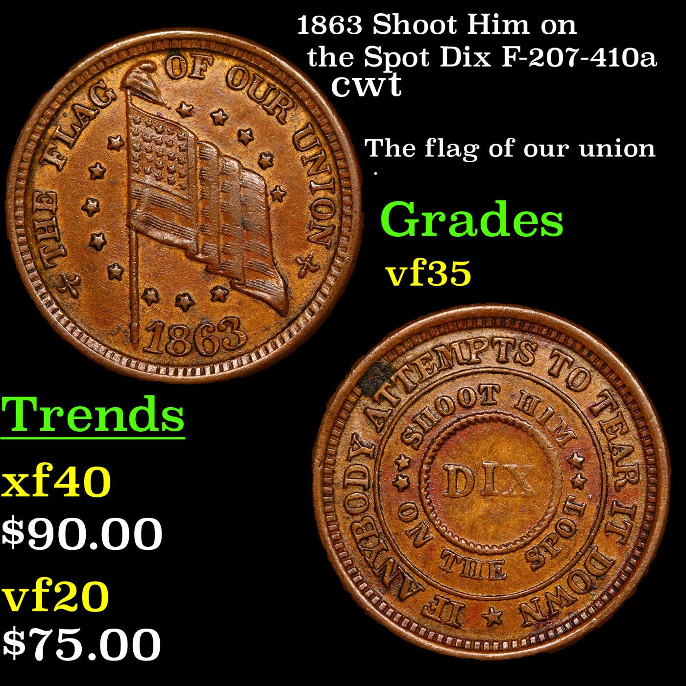 1863 Shoot Him on the Spot Dix F-207-410a Civil War Token 1c Grades vf++.