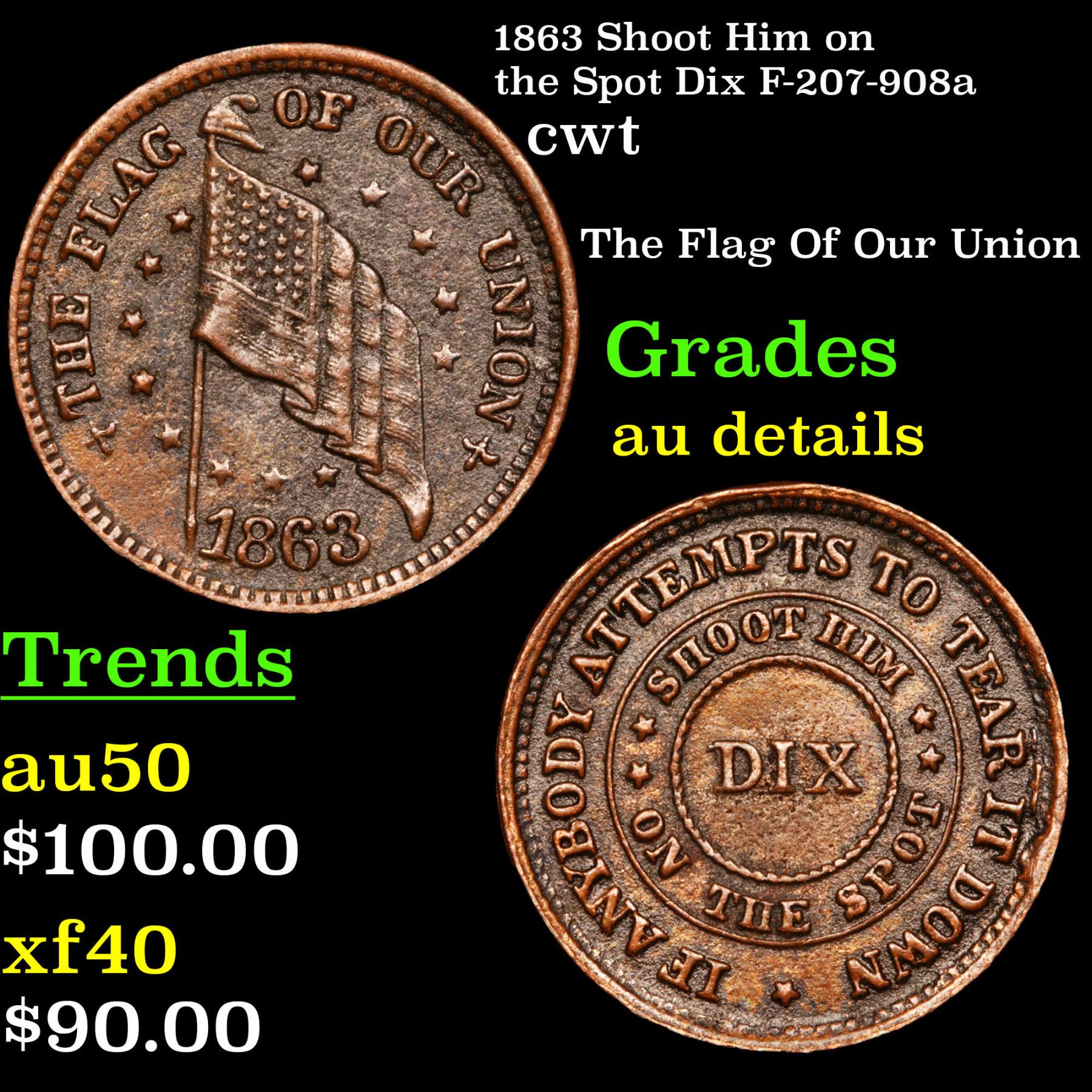 1863 Shoot Him on the Spot Dix F-207-908a Civil War Token 1c Grades AU Details.