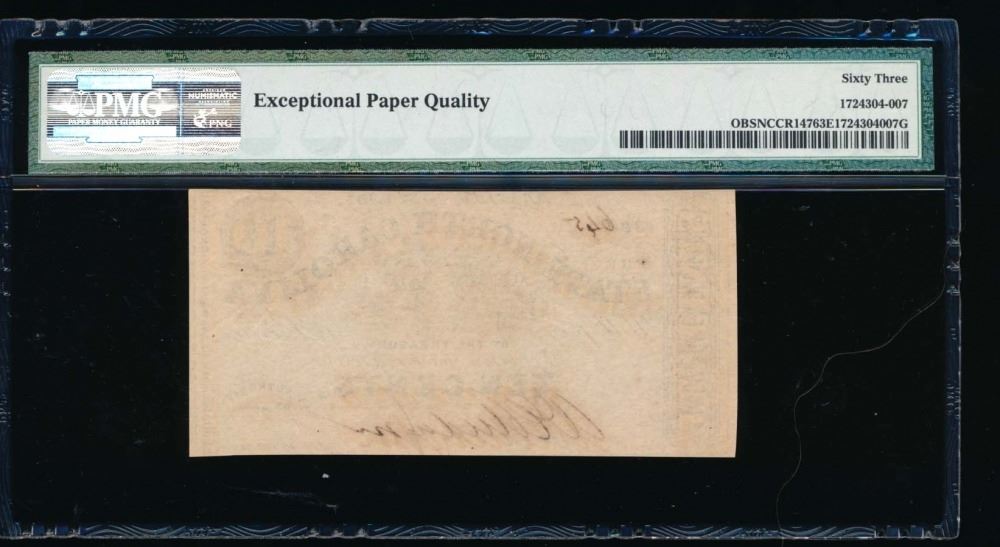 One 1863 Ten Cent Raleigh NC Obsolete Note PMG 63EPQ.