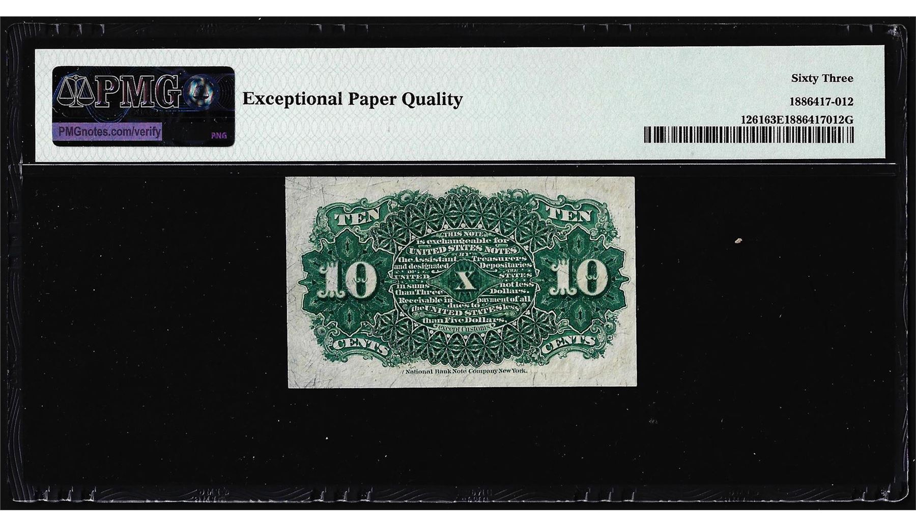 1863 Ten Cents Fourth Issue Fractional Note Fr.1261 PMG Choice Uncirculated 63EPQ