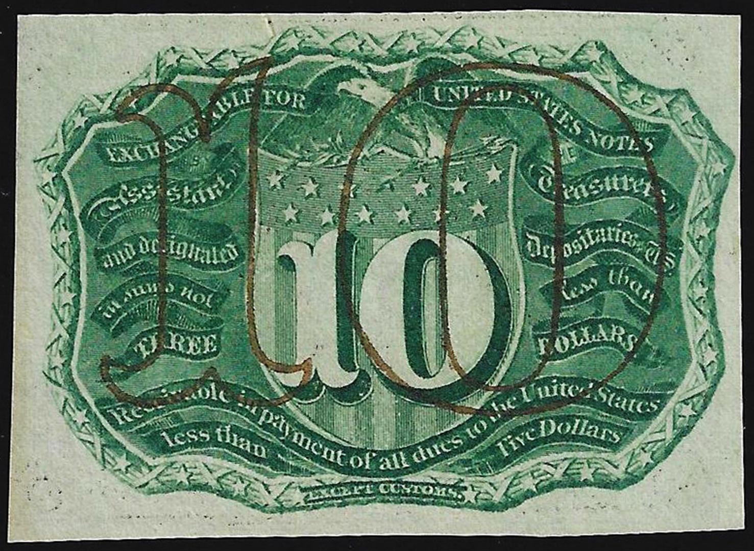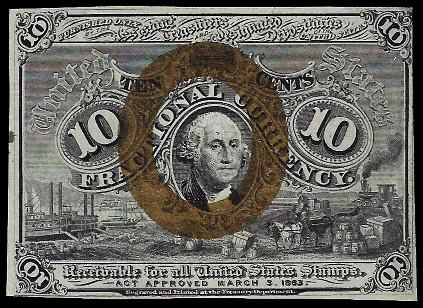 One 1863 Ten Cents Second Issue Fractional Currency Note.