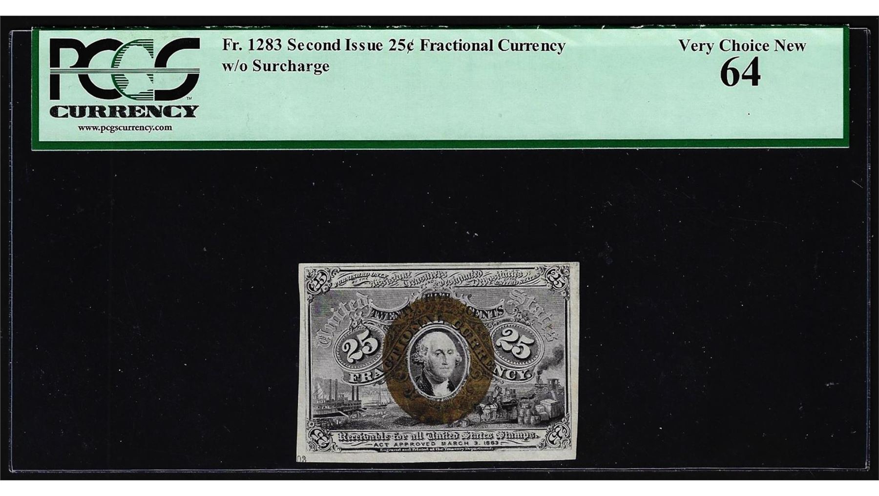 One 1863 Ten Cents Second Issue Fractional Currency Notes Fr.1283 PCGS Very Choice New 64. PCGS Graded.