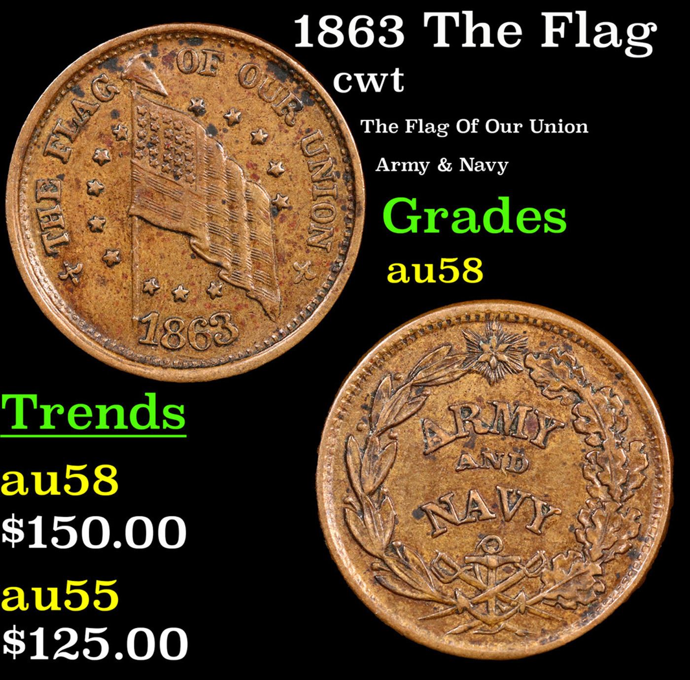 1863 The Flag Civil War Token 1c Grades Choice AU/BU Slider.
