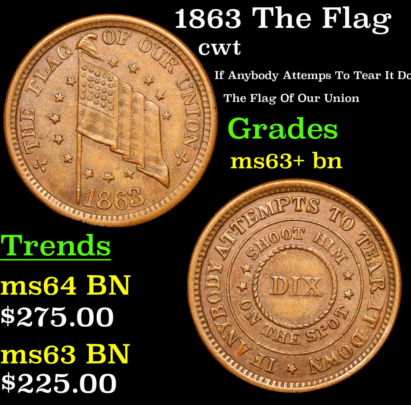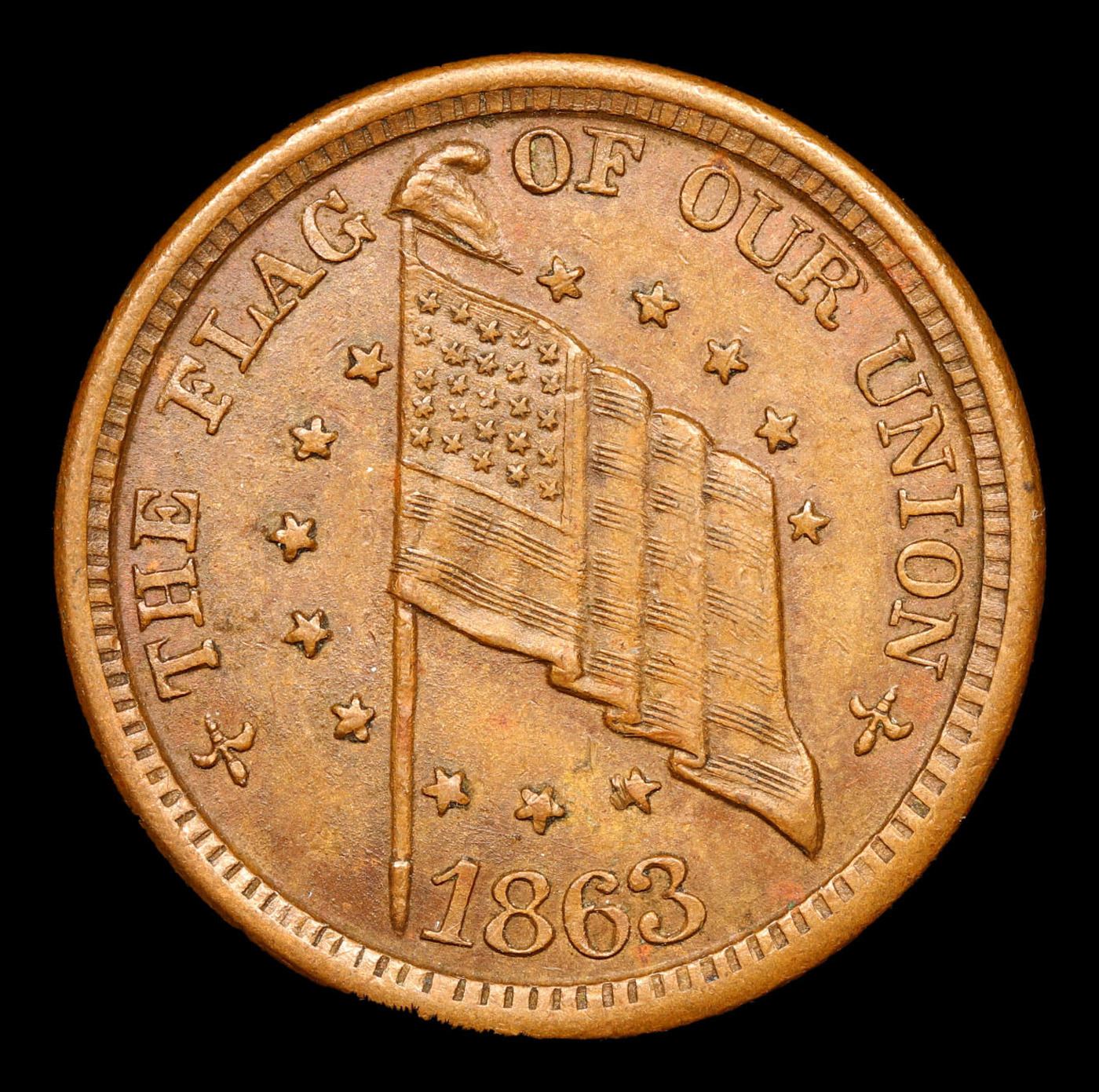 1863 The Flag Civil War Token 1c Grades Select+ Unc BN.