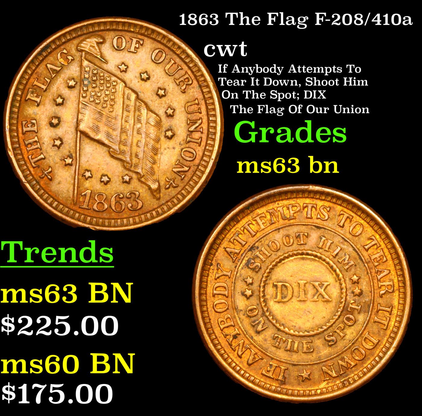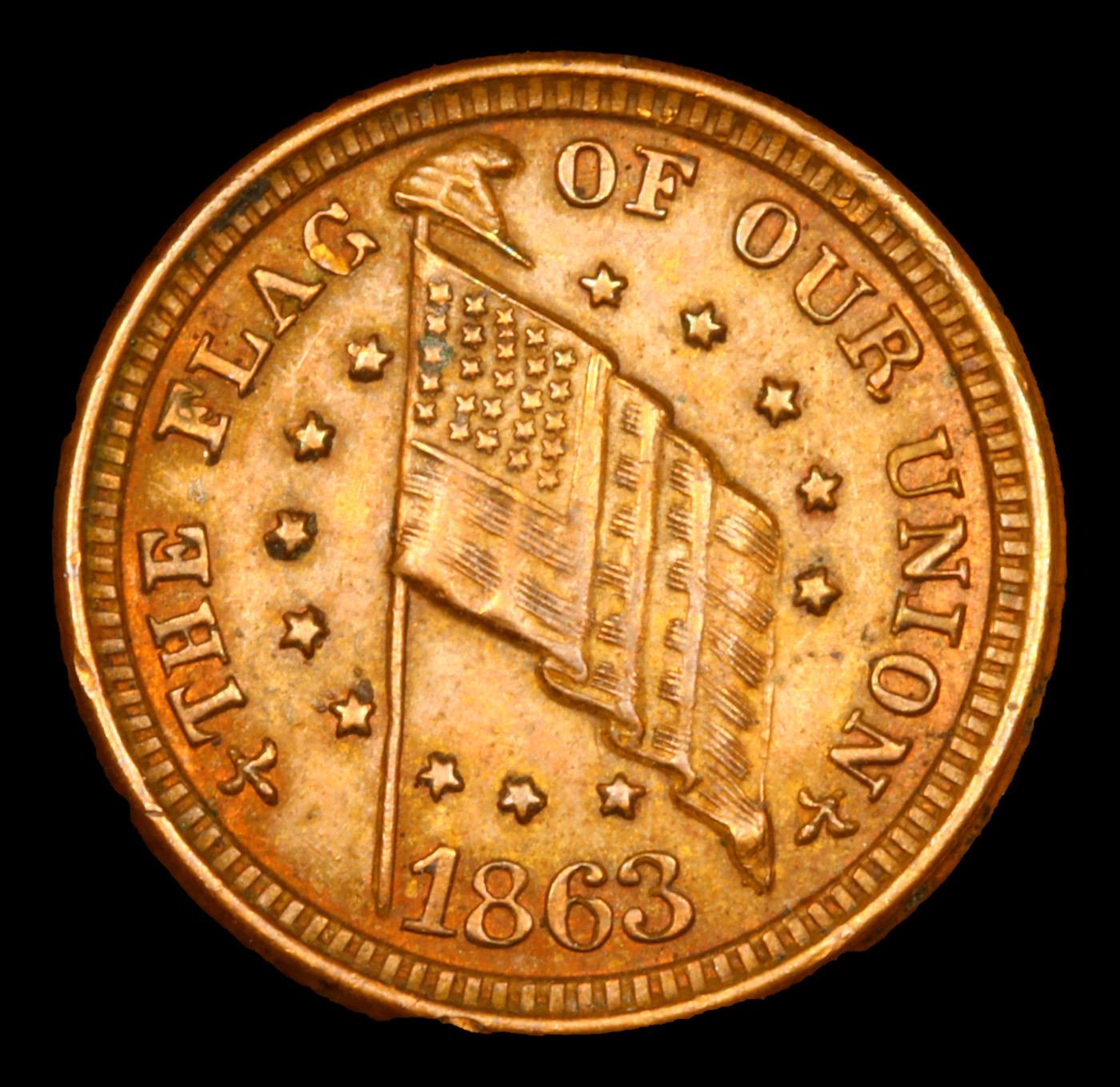 1863 The Flag F-208/410a Civil War Token 1c Grades Select Unc BN.