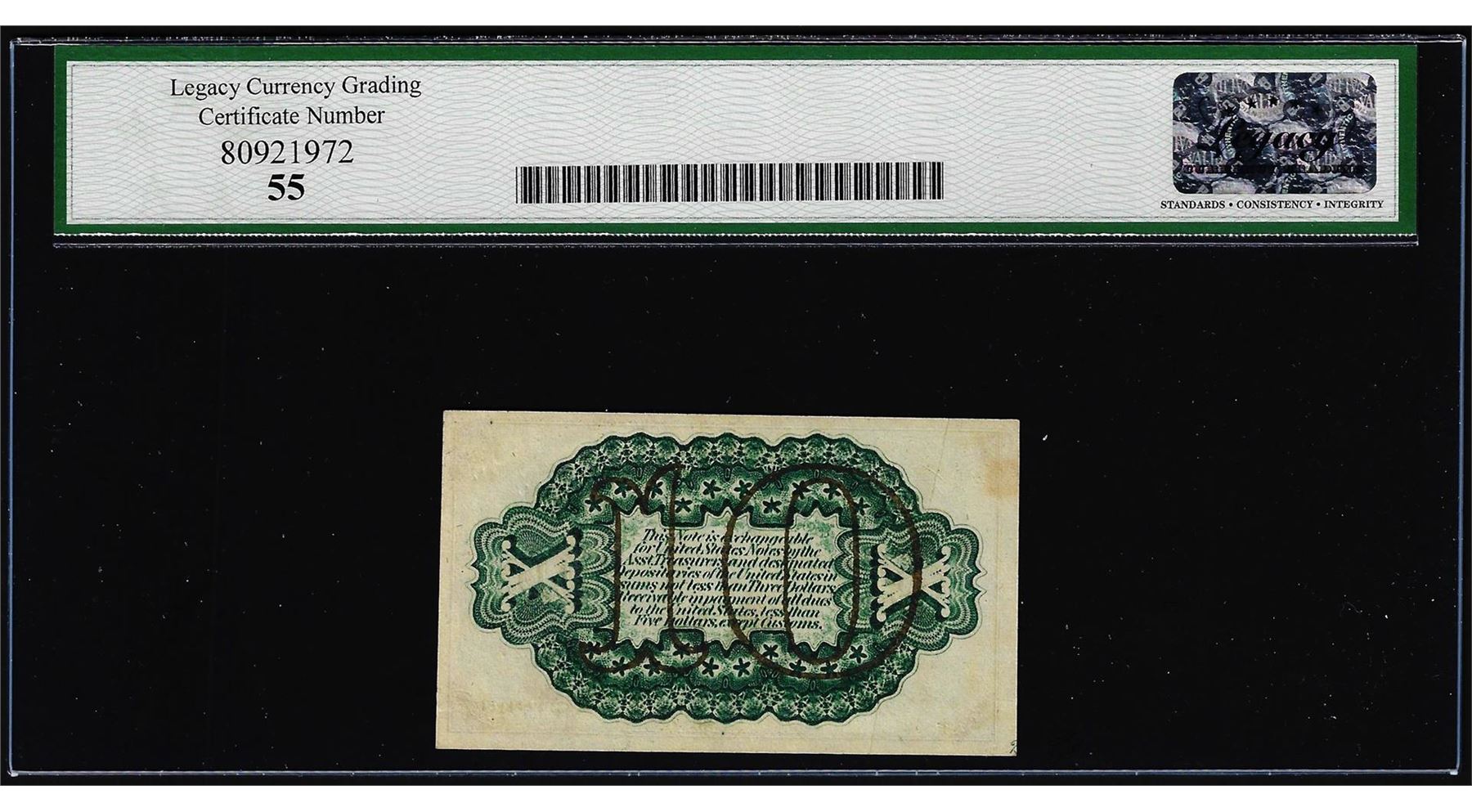 One 1863 Third Issue 10 Cents Fractional Currency Note Fr.1255 Legacy Choice About New 55. Legacy Graded.